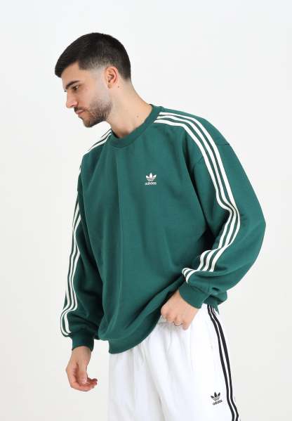 Adithtdas Men's Adicolor Oversized Crew Sweatshirt in Green. Spice up your everyday style with this Adithtdas sweatshirt. The oversized fit and ribbed details add a contemporary touch, while the fleece construction is pure softness. Contrasting 3-Stripes and a Trefoil logo connect you to the brand's legendary sporty DNA. The model is wearing a size L and is 187 cm tall. Machine wash and iron at medium heat. Fall/Winter season.