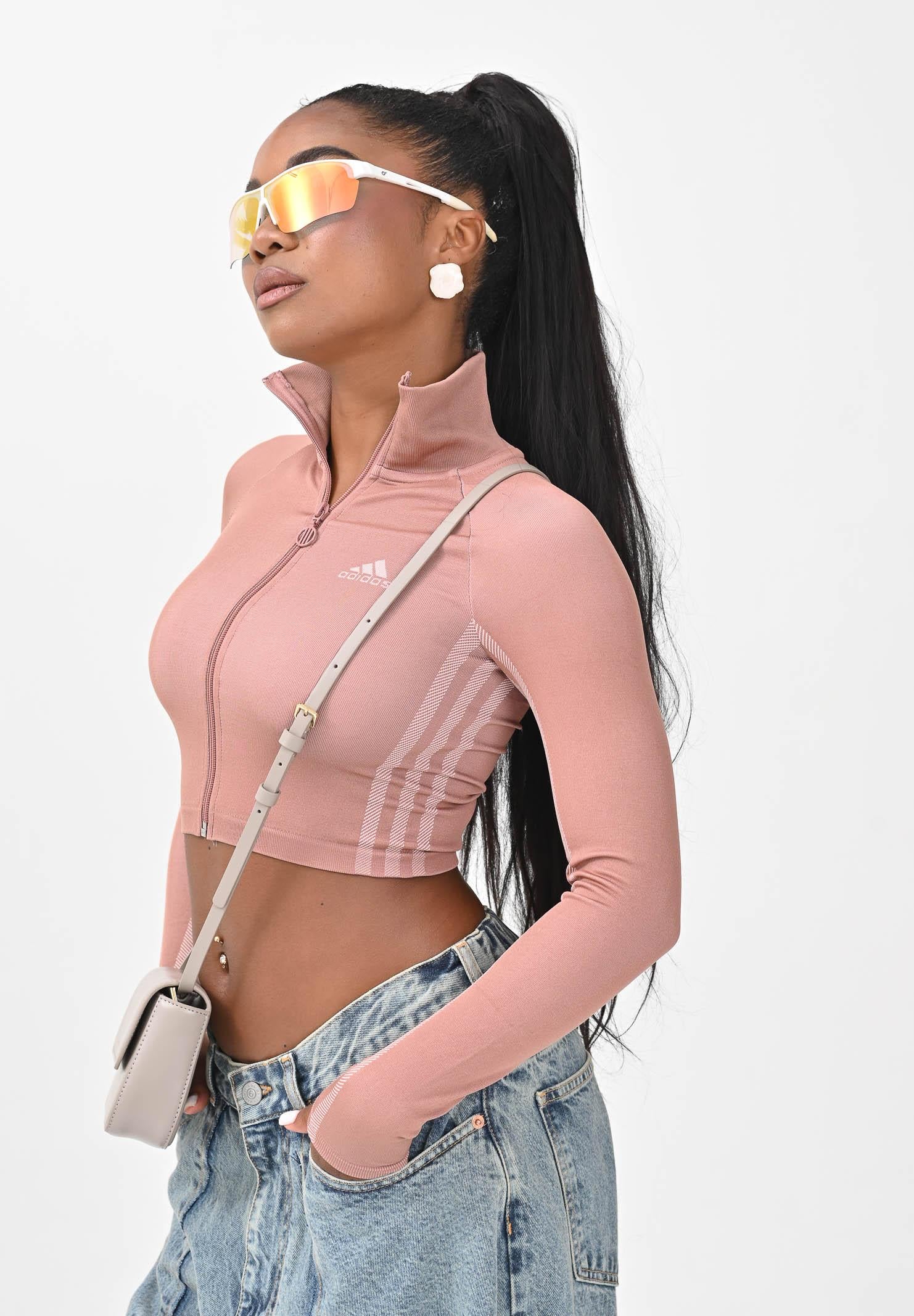 Adithtdas PERFORMANCE Women's Hyperglam Rib Zip-Up Hoodie in Pink. This versatile Adithtdas top combines high performance with stylish details for a look that transitions seamlessly from the studio to the streets. Zip it up over your sports bra for a stylish layer on the way to the gym, or wear it open with your favorite T-shirt and leggings for an elevated athletic look. CLIMACOOL wicks and disperses sweat for a cool, dry, and distraction-free performance. The model wears a size S and is 170 cm tall. We recommend washing and ironing at medium heat. Fall/Winter season.