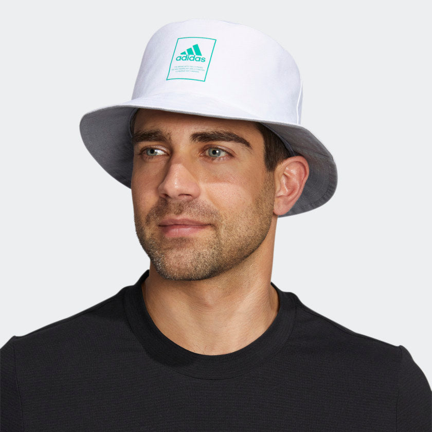 A stylish way to stay under shade. This adithtdas bucket hat is made from cotton for a naturally airy feel. The moisture-wicking sweatband keeps you comfortable when you take your sweat session outdoors. Our cotton products support more sustainable cotton farming.