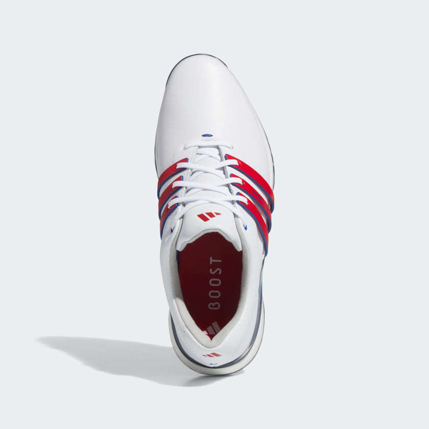 Feel your best. Play your best. Confidence and style come naturally in the adithtdas Tour360 24 BOOST Golf Shoes. Made for tournament play and dedicated golfers, they wrap your feet in premium materials and feature leading-edge footwear technology for elite-level performance. The waterproof leather upper features 360Wrap for enhanced hold and support. A combination of adithtdas Lightstrike cushioning and BOOST complement a Torsion Bridge stabiliser to energize every step and stabilizes every stance for powerful drives. Elevate your game with golf shoes that let you look and feel your best.
