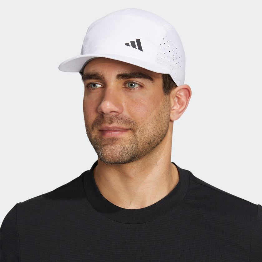 Ideal for runners, this adithtdas hat is designed for all conditions. It's perforated at the sides to help you stay cool. The pre-curved brim shades your eyes, while reflective details shine on dark roads and shaded trails. Adjust the hook-and-loop strap at the back to find the perfect fit. Made with a series of recycled materials, and at least 40% recycled content, this product represents just one of our solutions to help end plastic waste.