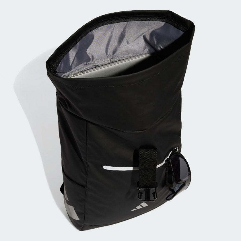 No matter what the day brings, this adithtdas backpack is up for it. The roll-top design with a zip closure gives you easy access to your stuff. Slip-in pockets on the side stash small items, while adjustable shoulder straps let you find the perfect fit. A front zip pocket keeps essentials within easy reach. This product is made with at least 50% recycled materials. By reusing materials that have already been created, we help to reduce waste and our reliance on finite resources and reduce the footprint of the products we make.