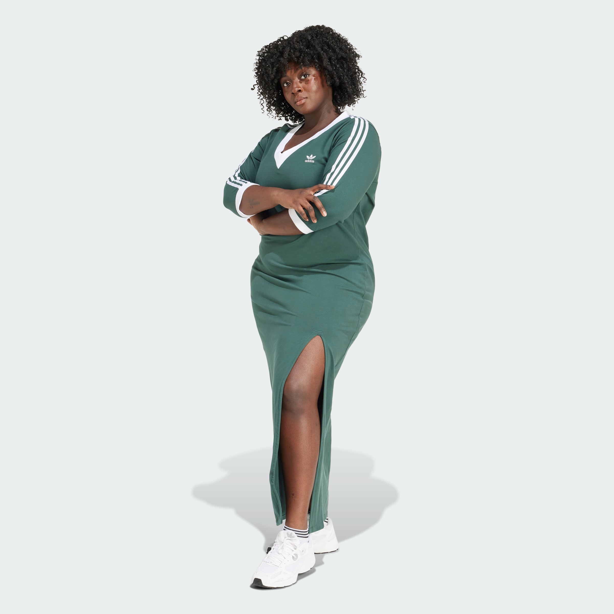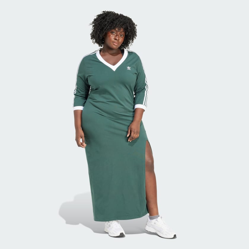 Women's adithtdas Adicolor Classics 3-Stripes V-Neck Maxi Dress (Plus Size)