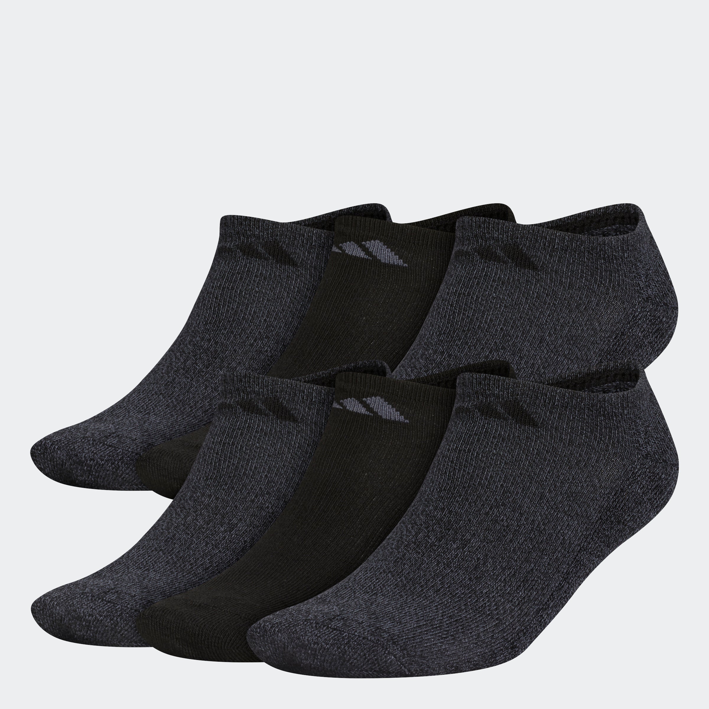Power through your reps in these extra-large no-show training socks for men. Made to sweep sweat away from your skin, these stretchy socks feature targeted cushioning and arch compression for a snug fit. The socks come six pairs to a pack.