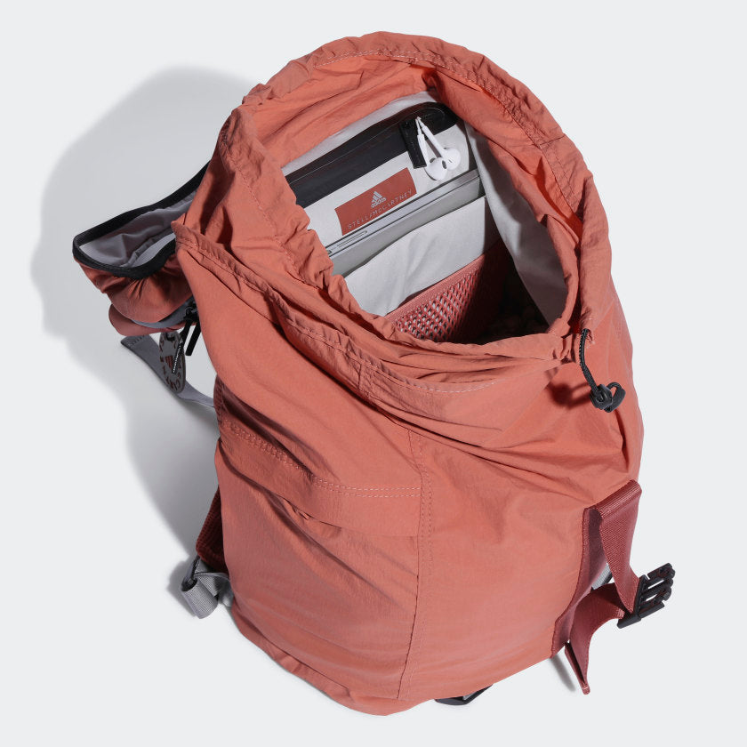 No matter how you plan it, some days just feel like you're moving from one thing to another all in one breath. First of all, breathe. Secondly, make sure you have this adithtdas by Stella McCartney backpack. The stylish essential is full of tricks. Expandable details give extra storage to the side zip pockets, and adjustable straps securely carry your jacket or yoga mat without taking away space. All the things you need, all in one place. Made with a series of recycled materials, and at least 60% recycled content, this product represents just one of our solutions to help end plastic waste.
