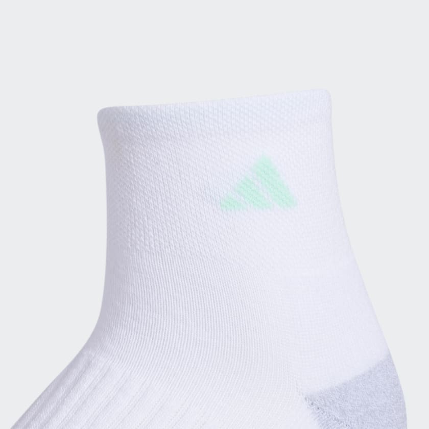 On the court or the cross trainer, the treadmill or the trails, these quarter-length adithtdas socks keep you powering ahead. They're made from soft and stretchy fabric, with mesh panels to let air flow around the foot. A compression fit through the arch adds support, while the cushioned footbed helps protect high-impact areas. Made with a series of recycled materials, and at least 40% recycled content, this product represents just one of our solutions to help end plastic waste.