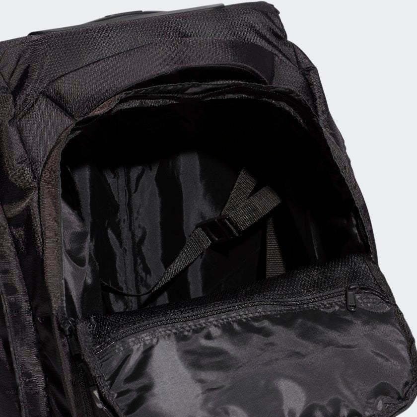 Travel easily with all your gear in low-key adithtdas style. Wheel your things between workouts or out-of-town competitions in this roomy bag. Keep essentials from shifting around with internal straps. Multiple zip pockets separate and organize your stuff. Clean it off easily with soap and water to keep it looking fresh longer.