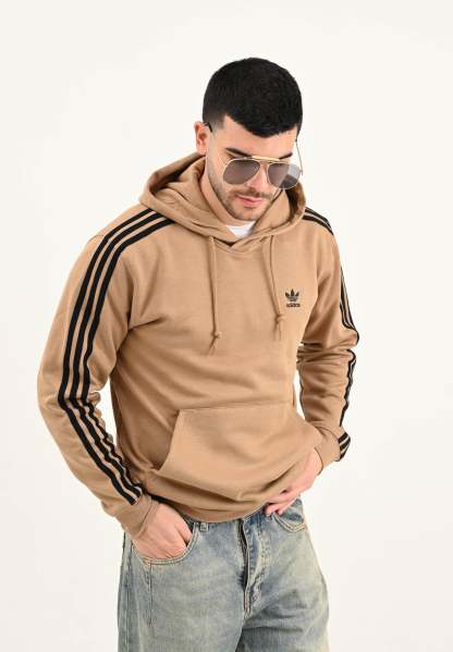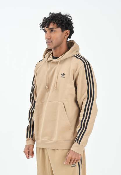 Adithtdas Men's Adicolor Classics 3-Stripes Hoodie in Beige. Adopt an iconic archive look with the Adithtdas Adicolor Classics 3-Stripes Hoodie. This timeless piece is made of soft fleece and has a regular fit, making it perfect for casual everyday wear. The embroidered Trefoil logo and 3-Stripes down each sleeve add a touch of style that stays true to the classic design. The model is wearing a size L and is 187 cm tall. Machine wash and iron at medium heat. Available for autumn/winter.