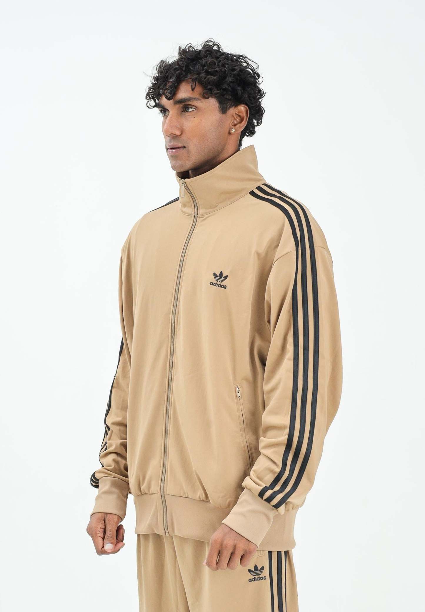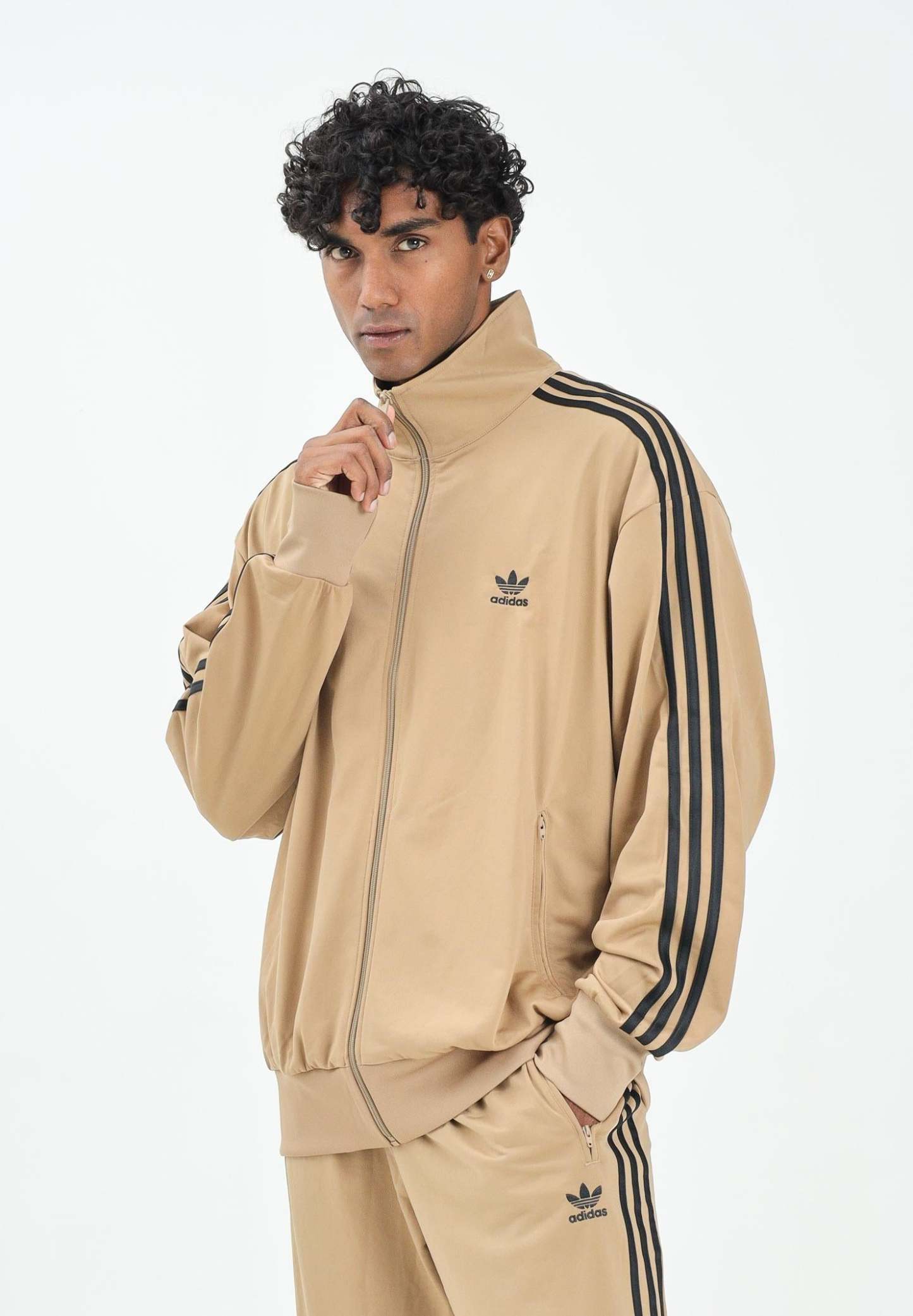 Adithtdas men's adicolor Classics Firebird zip-up sweatshirt in beige. An iconic piece updated with an adicolor twist. This essential style features the legendary Firebird style you know and love, but with a contemporary fit and a fresh color palette. The embroidered Trefoil logo on the chest and 3-Stripes down the sleeves reference Adithtdas DNA, while the high neck helps you take on the day with determination. Zip pockets keep essentials close at hand, and ribbed cuffs ensure stability. The model is wearing a size L and is 187 cm tall. Machine wash and iron at medium heat. Fall/Winter season.