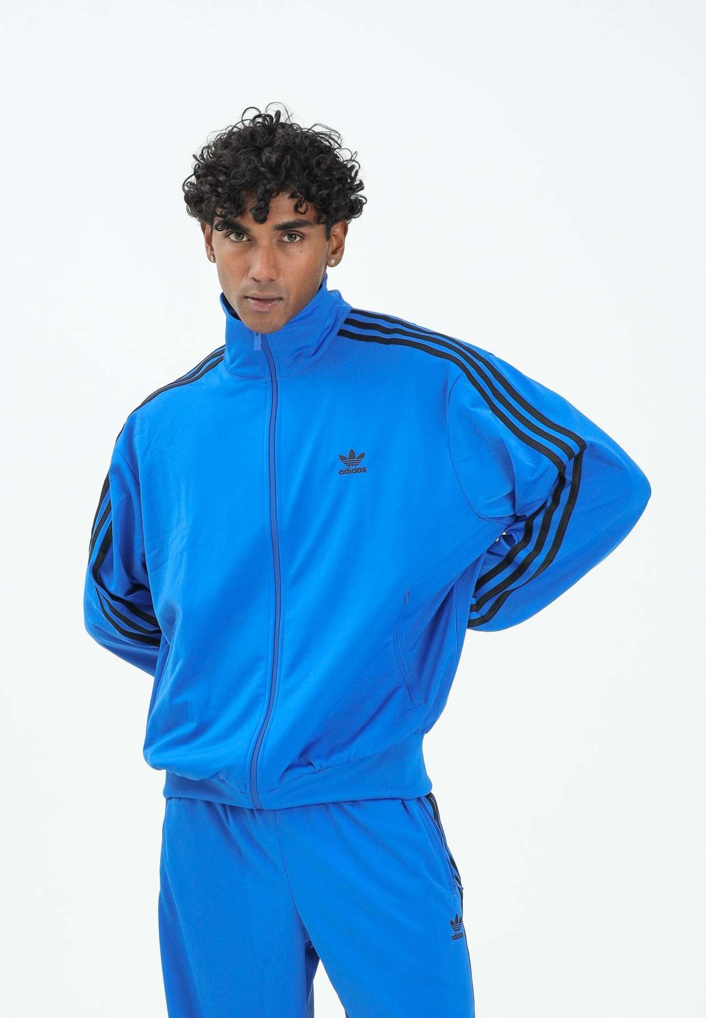 Adithtdas Men's Firebird Adicolor Classics Zip-Up Hoodie in Blue. A classic look with the Adicolor treatment. This essential features the iconic Firebird style you know and love, but with a modern fit and a fresh color palette. The embroidered Trefoil logo on the chest and 3-Stripes down the arms are pure Adithtdas DNA, while the stand-up collar gives you the attitude and touch you need to dominate the day. Keep essentials safe in the zip pockets and stay warm with the ribbed cuffs. The model is wearing a size L and is 187 cm tall. Wash and iron at medium heat. Fall/Winter season.