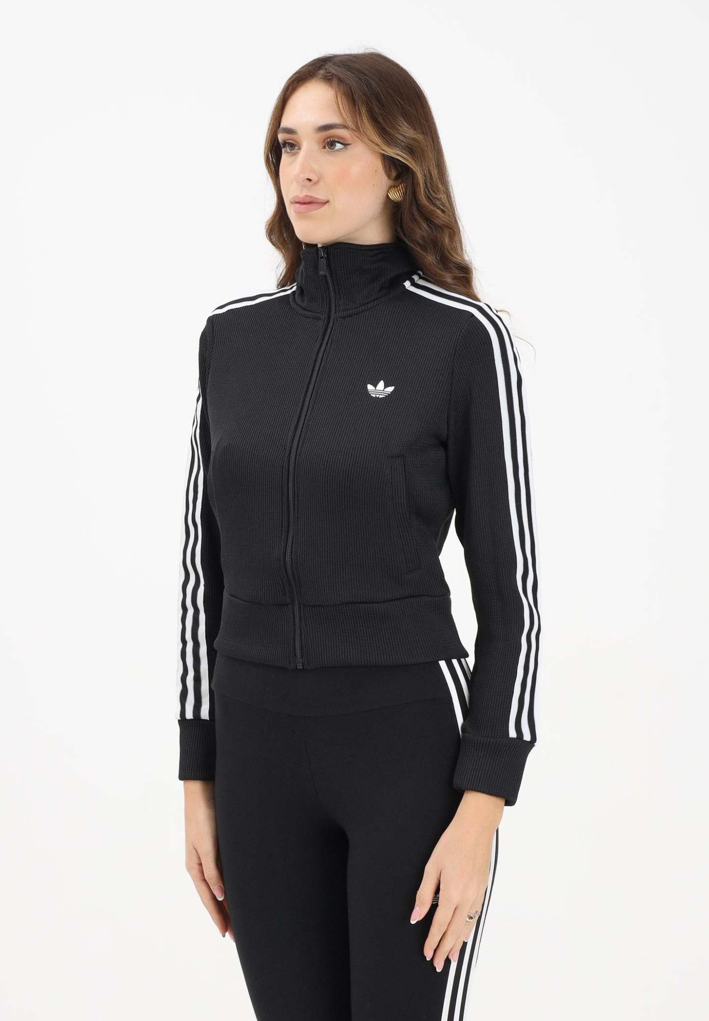Adithtdas Women's Firebird Adicolor Knit Zip-Up Hoodie in Black. Born from the archives, this Adithtdas hoodie is iconic for a reason. It's made from soft double-knit fabric with a relaxed fit, perfect for layering. Pair it with matching trousers for a complete look that harks back to retro sportswear style, or wear it with your favorite jeans for a more relaxed look. The model wears a size S and is 170 cm tall. Machine wash and iron at medium heat. Fall/Winter season.