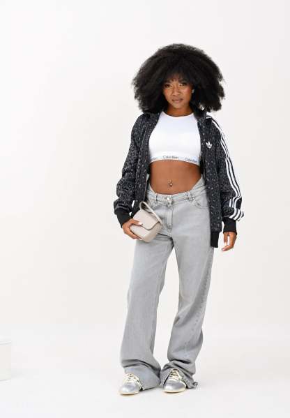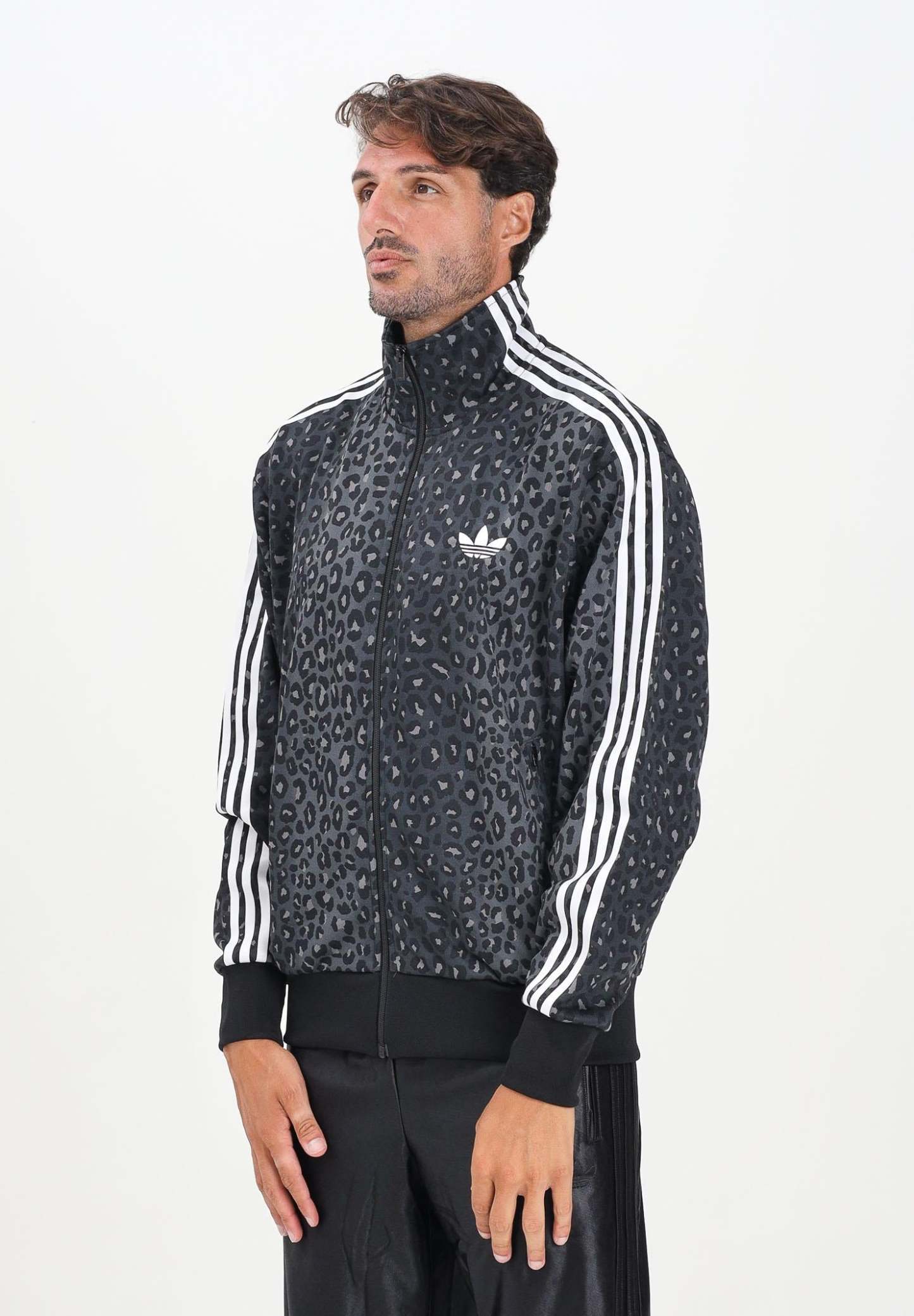 Adithtdas Men's Firebird Loose Leo Zip-Up Hoodie in Black. This Adithtdas training jacket features a loose fit for a casual look. Made from polyester interlock fabric, it's a wardrobe essential. The iconic 3-Stripes down the sleeves are a nod to decades of Adithtdas history. The Firebird collar adds a sporty touch to the look. The model is wearing a size L and is 190 cm tall. Machine wash and iron at medium heat. Fall/Winter season.