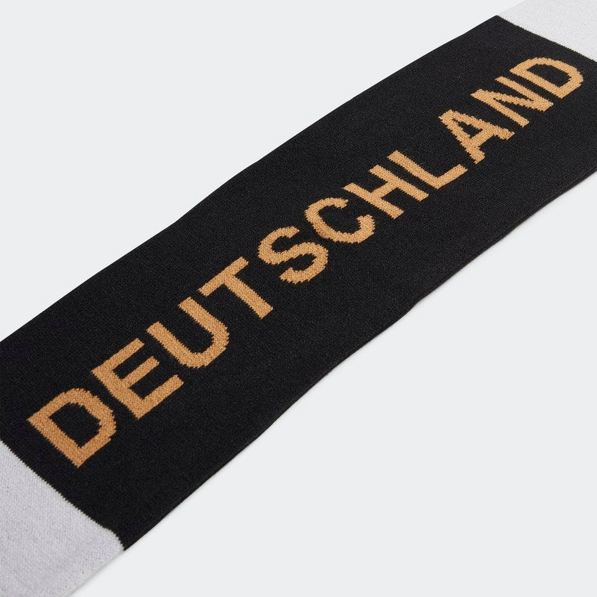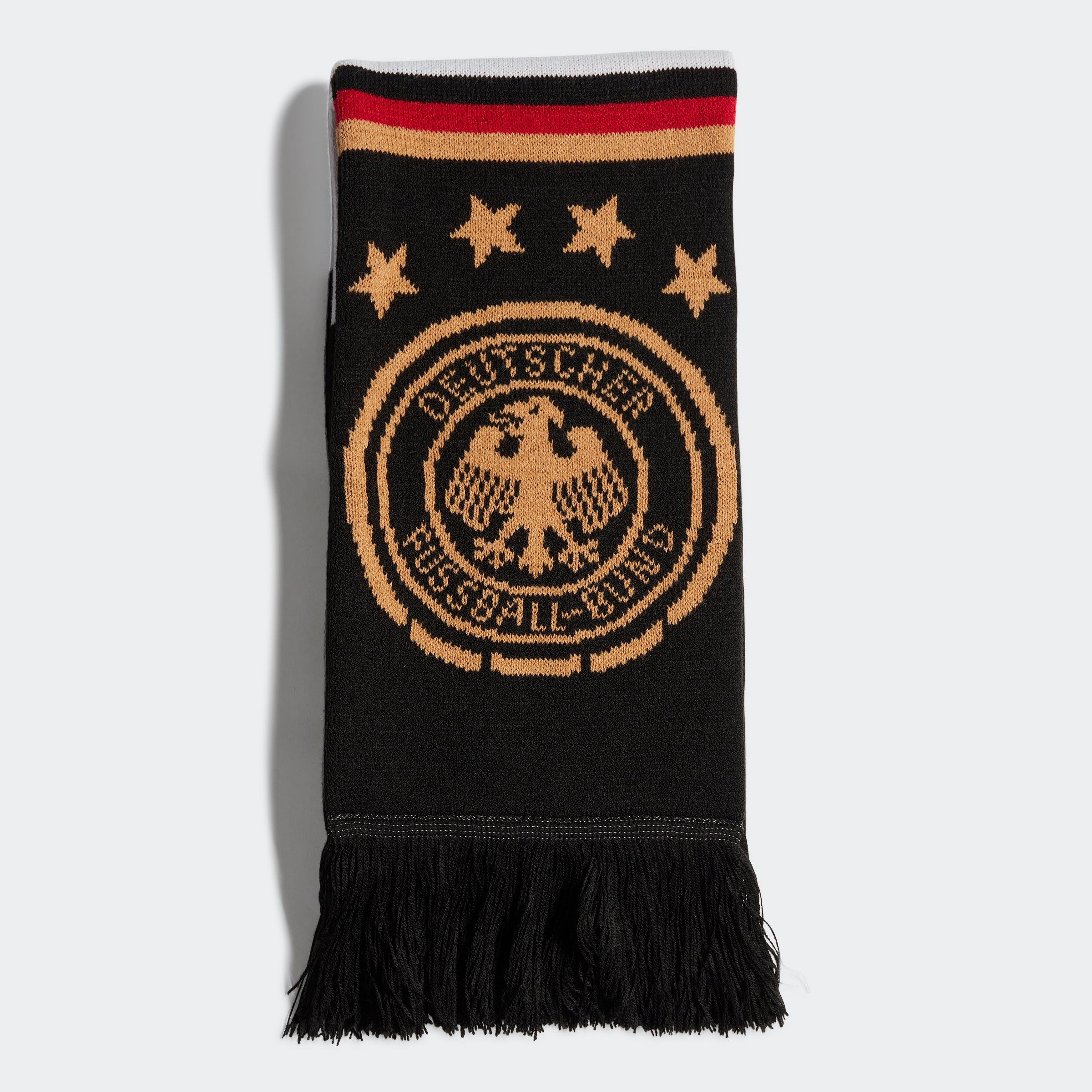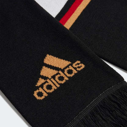 Loud and proud. Inspired by their match kit details, this adithtdas scarf leaves no doubts about your soccer support with a golden badge and team name. Soft knit fabric and fringed ends give it a comfortable feel and a classic look.