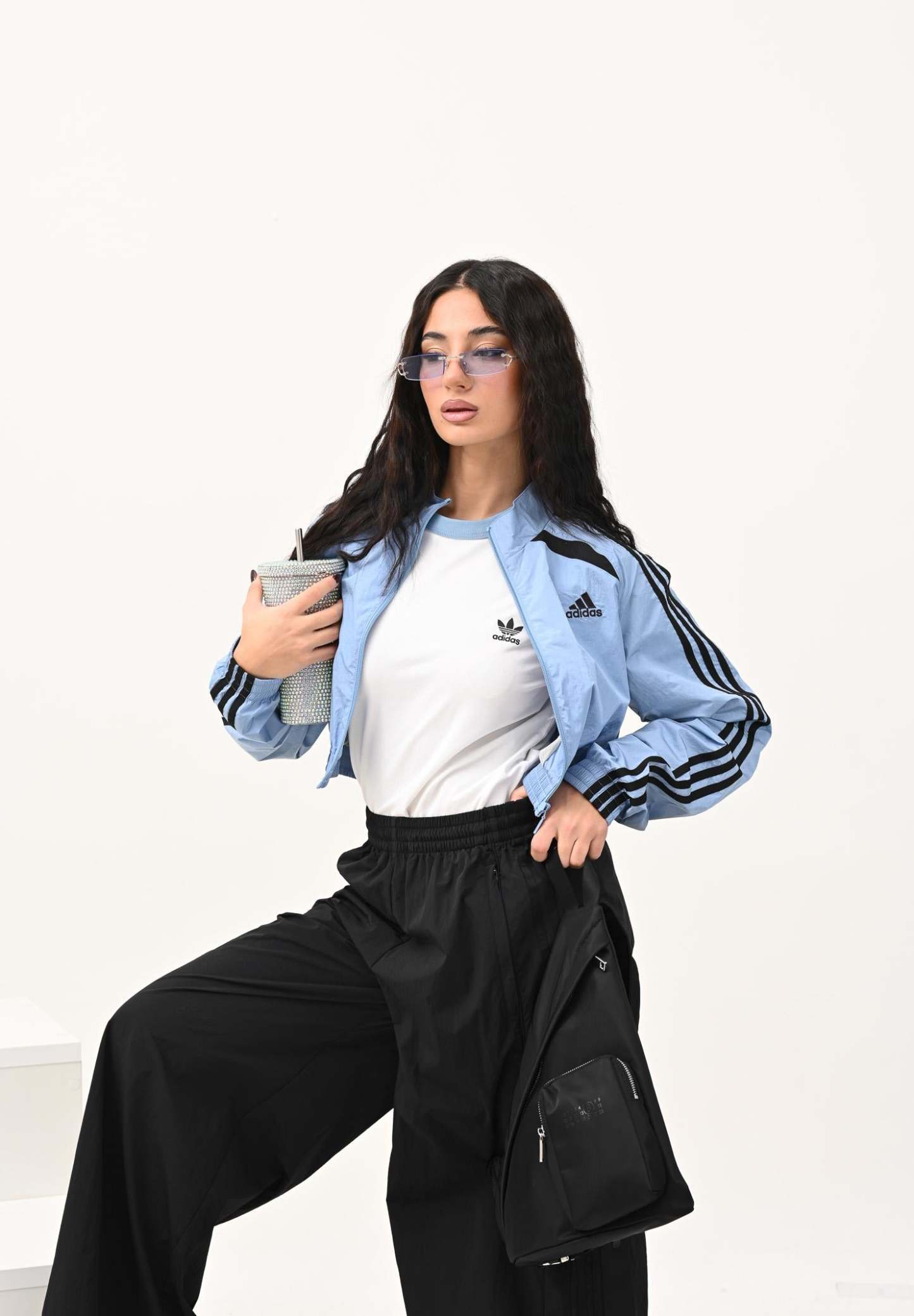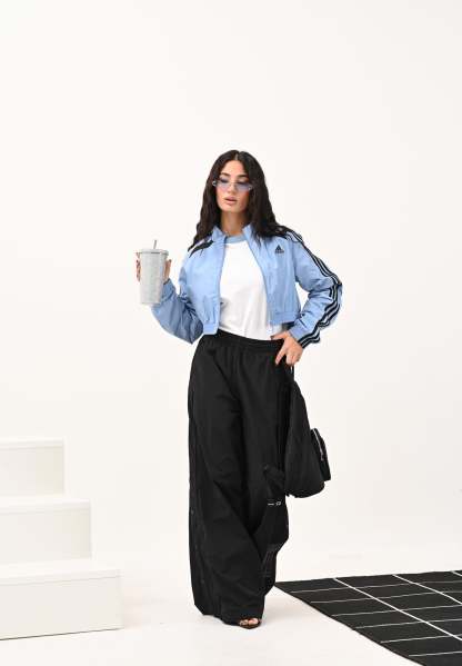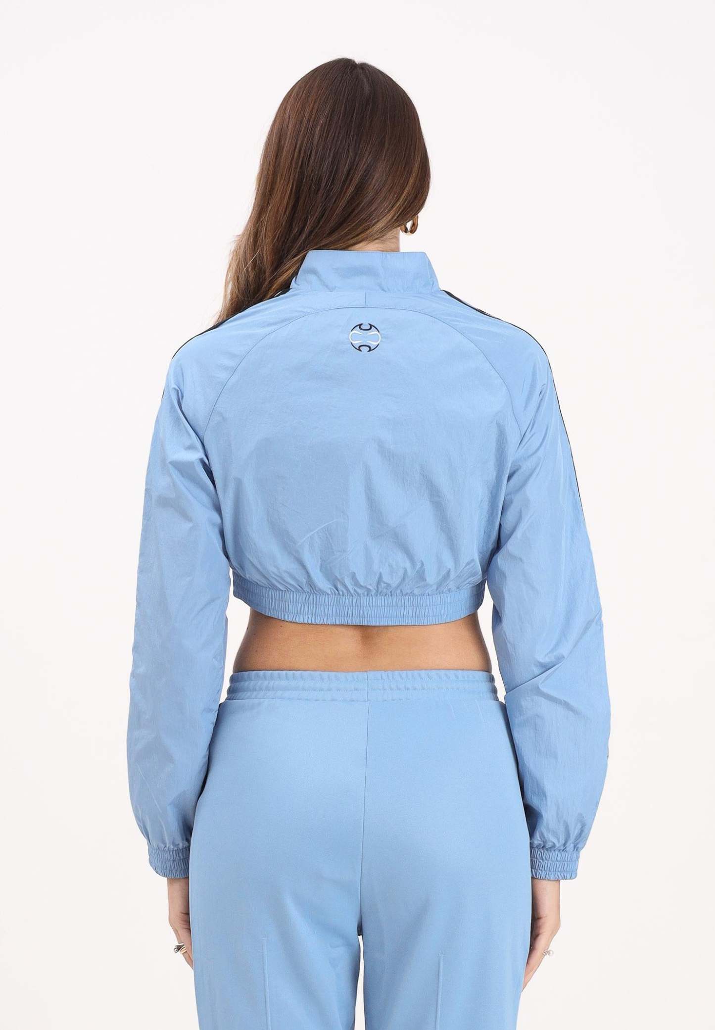 Adithtdas Teamgeist adicolor Cropped Windbreaker Jacket in light blue for women. Inspired by 2000s football style, this Adithtdas jacket reinvents archive styles with a cropped, contemporary fit. The crinkled nylon construction with a touch of shine adds a touch of style that won't go unnoticed. In the city or at home, this jacket ensures optimal coverage for every occasion. The model wears a size S and is 170 cm tall. Machine wash and iron at medium heat. Fall/Winter season.