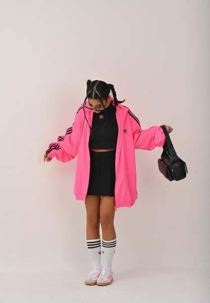Adithtdas Women's Adilenium Season 3 Oversized Windbreaker in Fuchsia. This Adithtdas tracksuit jacket adds a touch of style to your everyday look. With a relaxed fit, it's perfect for a laid-back style. Zip pockets let you store your essentials on the go. Elastic cuffs keep the sleeves in place. The versatile design makes the jacket perfect for pairing with joggers for a coffee or tailored trousers for a night out. The model wears a size S and is 170cm tall. We recommend washing and ironing at medium heat. Fall/Winter season.