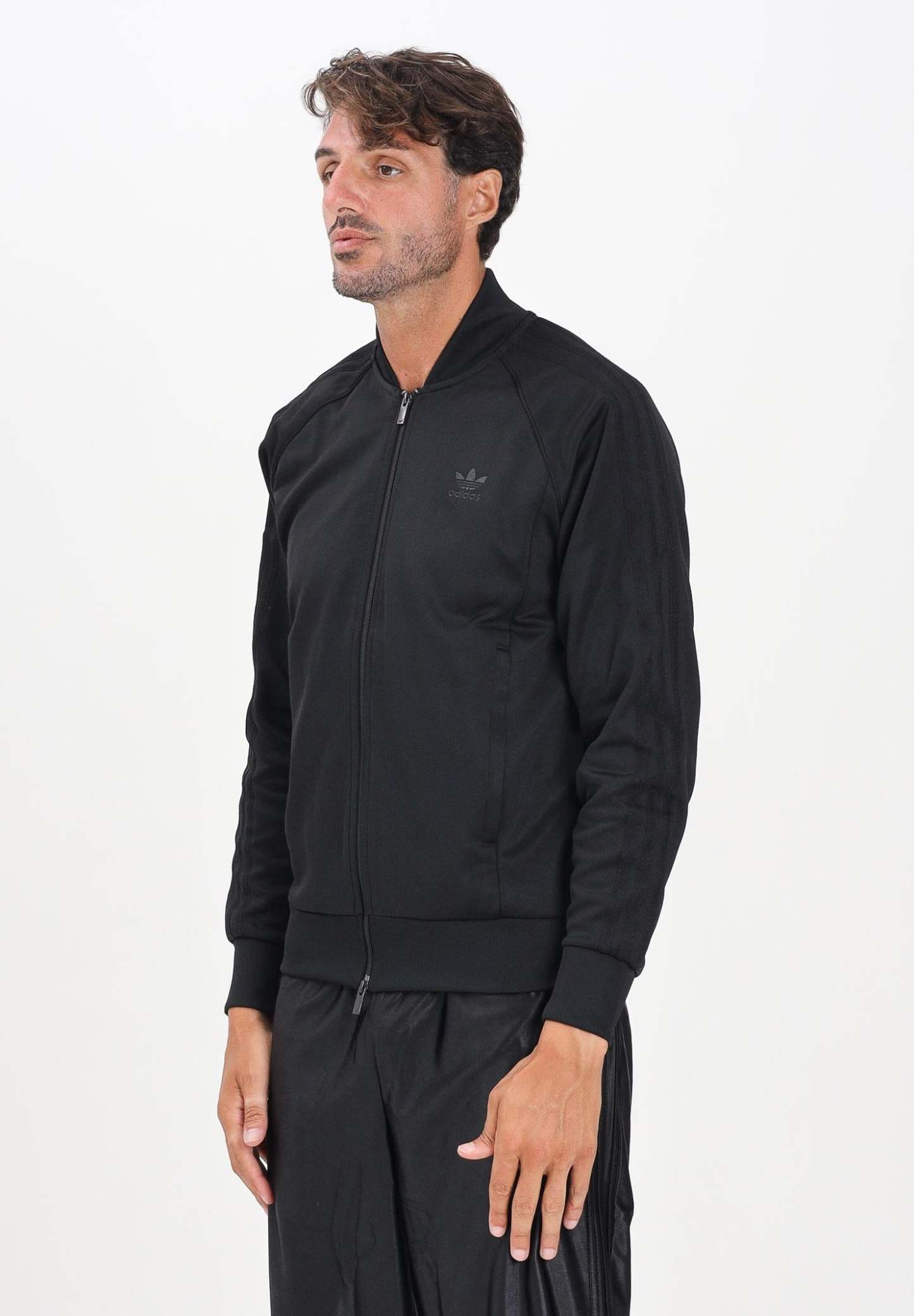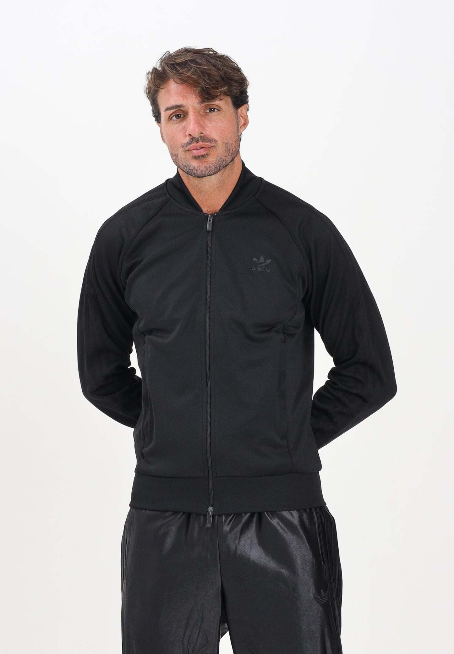 Adithtdas Men's Adicolor Classics SST Zip-Up Hoodie in Black. Everyone needs a good track jacket. Here's yours. Crafted from soft interlock fabric, this essential jacket stays true to its archive design inspiration. The embroidered Trefoil logo and 3-Stripes pay homage to classic Adithtdas style, while the ribbed hem and cuffs keep the fit tailored in all the right places. The full-zip front lets you layer it for warmth or wear it open with your favorite tee underneath. The model is wearing a size L and is 190cm tall. Wash and iron at medium heat. Fall/Winter season.