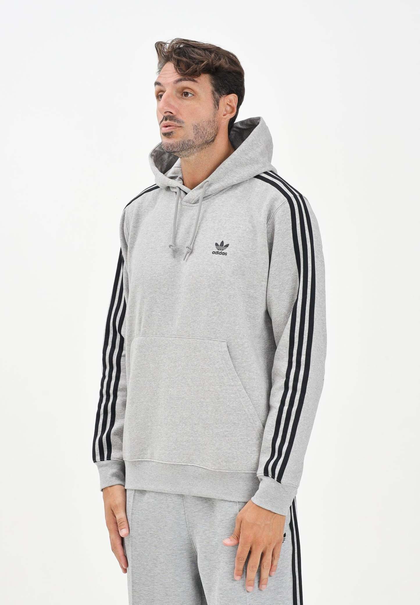Adithtdas Men's Adicolor Classics 3-Stripes Zip-Up Hoodie in Grey. Adopt an iconic archive look with the Adithtdas Adicolor Classics 3-Stripes Hoodie. This timeless piece is made of soft fleece and has a regular fit, making it perfect for casual everyday wear. The embroidered Trefoil logo and 3-Stripes down each sleeve add a touch of style that stays true to the classic design. The model is wearing a size L and is 187 cm tall. Machine wash and iron at medium heat. Fall/Winter season.