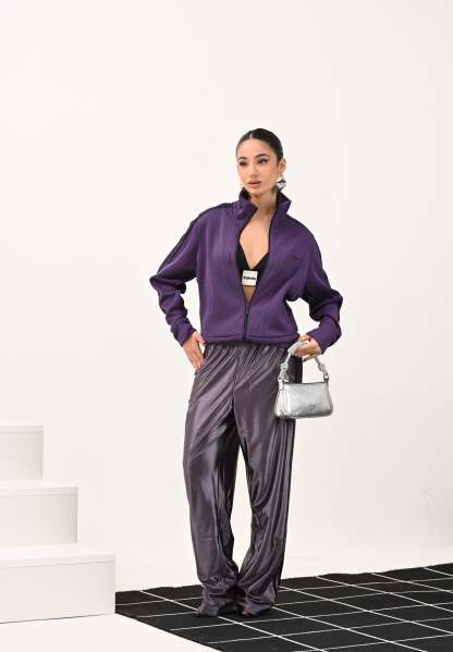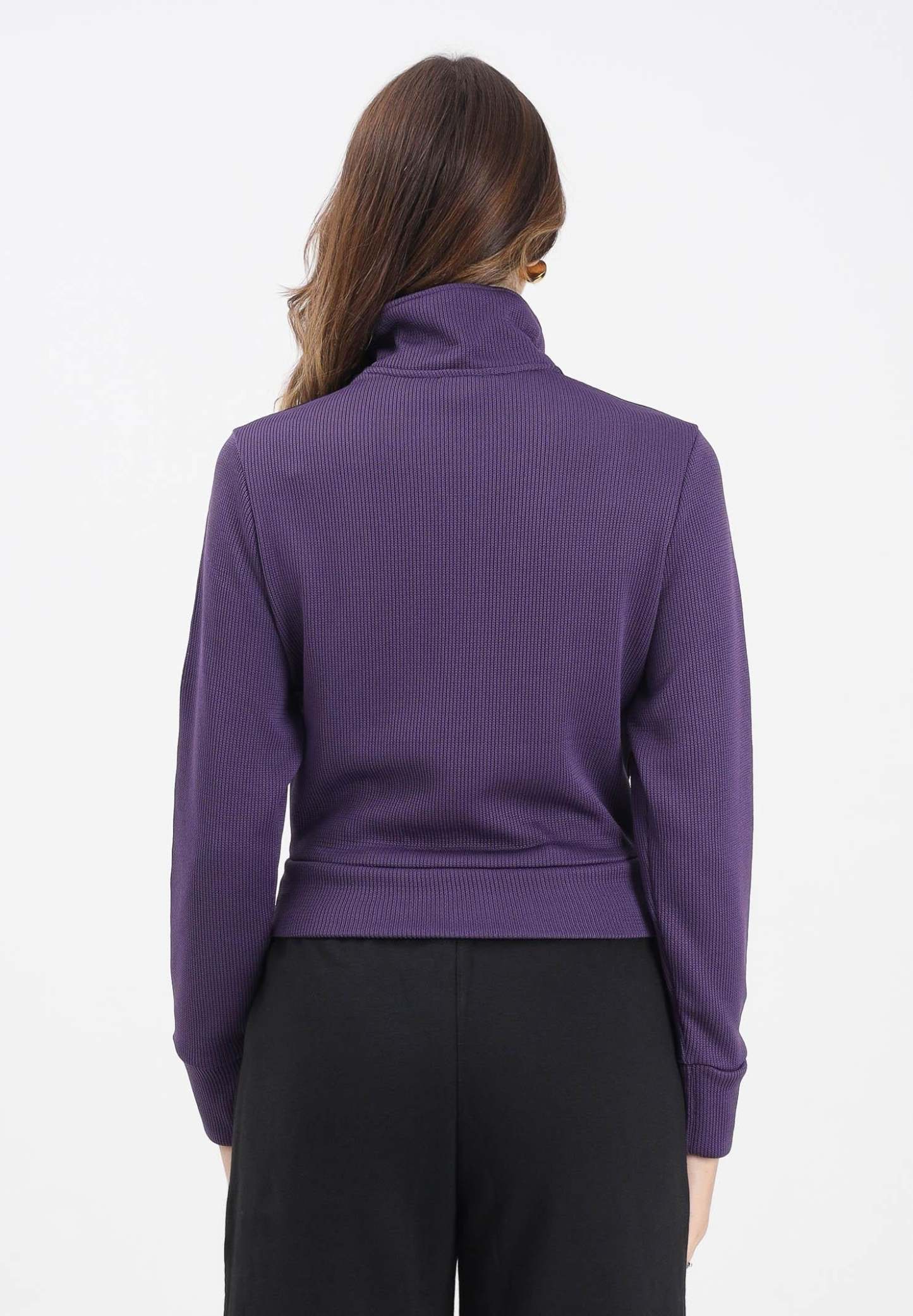 Adithtdas Women's Firebird Adicolor Knit Zip-Up Hoodie in Purple. Born from the archives, this Adithtdas hoodie is iconic for a reason. It's made from soft double-knit fabric with a relaxed fit, perfect for layering. Pair it with matching pants for a complete look that harks back to retro sportswear, or wear it with your favorite jeans for a more relaxed look. The model wears a size S and is 170 cm tall. Machine wash and iron at medium heat. Fall/Winter season.
