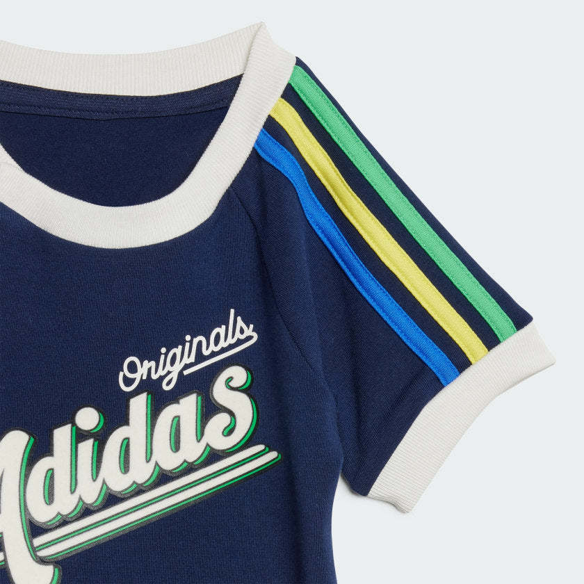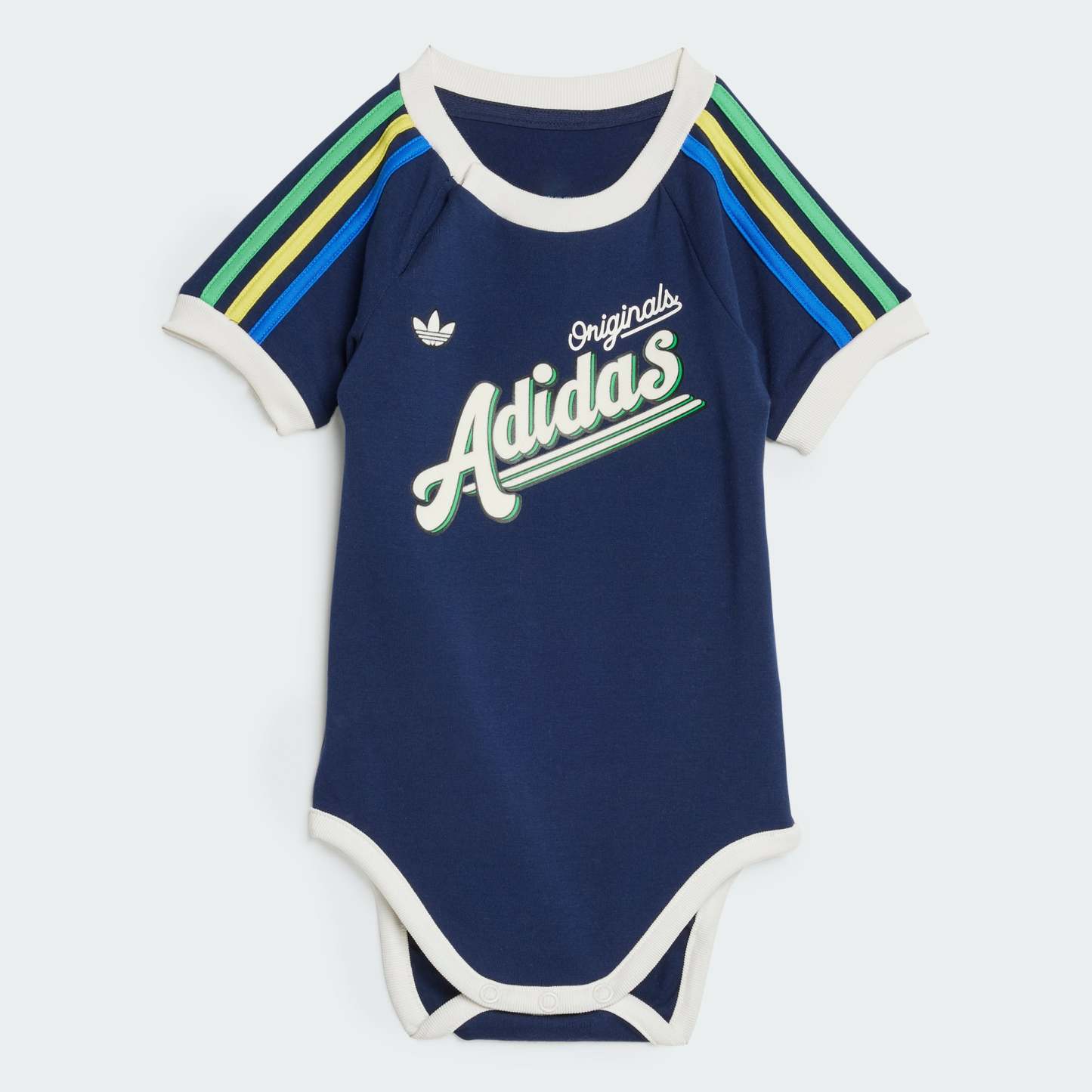 Little ones will be ready for adventure in this toddlers' bodysuit from adithtdas. The stretchy cotton-blend fabric is designed to move with them as they crawl, walk and run. Classic 3-Stripes run down the sides, and an oversized adithtdas Originals graphic on the front provides a unique sporty finish.