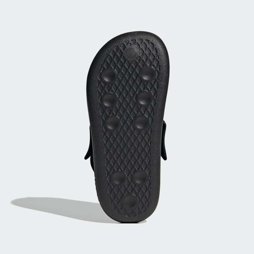 These adithtdas slides for juniors were born for sunny days and good times. A memory foam footbed lets them slip into comfort and the detachable hook-and-loop heel strap allows for easy on and off. The one-piece EVA outsole provides lightweight cushioning for all-day wear. From the Adilette that started it all comes a new generation of slides ready for adventure.