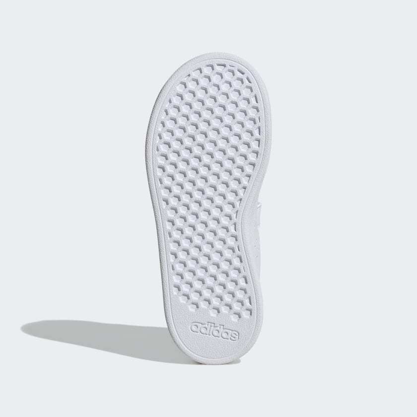 Perforated with the 3-Stripes at the sides, these kids' adithtdas sneakers are sleek and sporty, pairing nicely with just about any casual outfit. The lightweight upper is lined for a soft feel against the foot while hook-and-loop straps make for easy on and off. A durable rubber outsole stands up to adventures on the playground and games of tennis at the park.