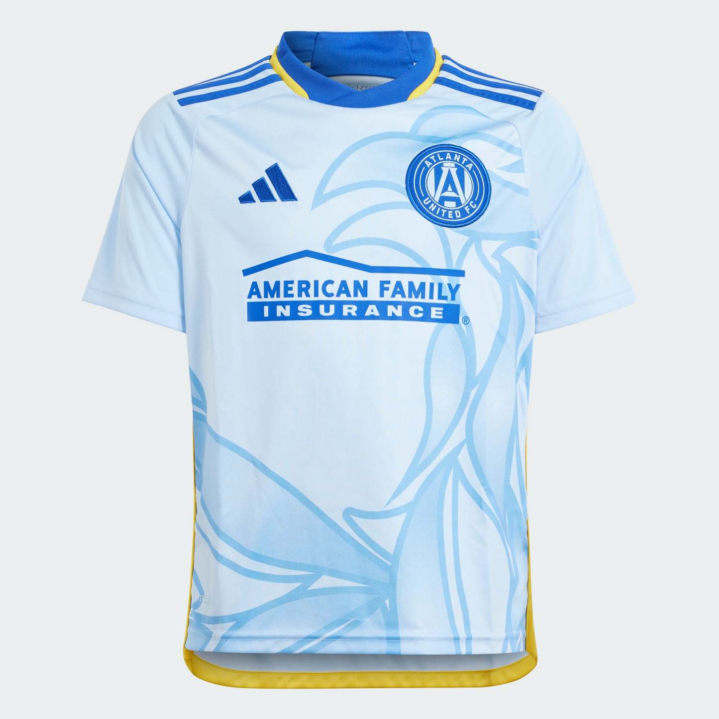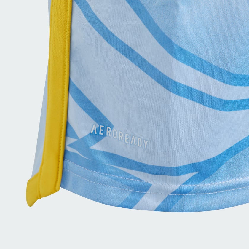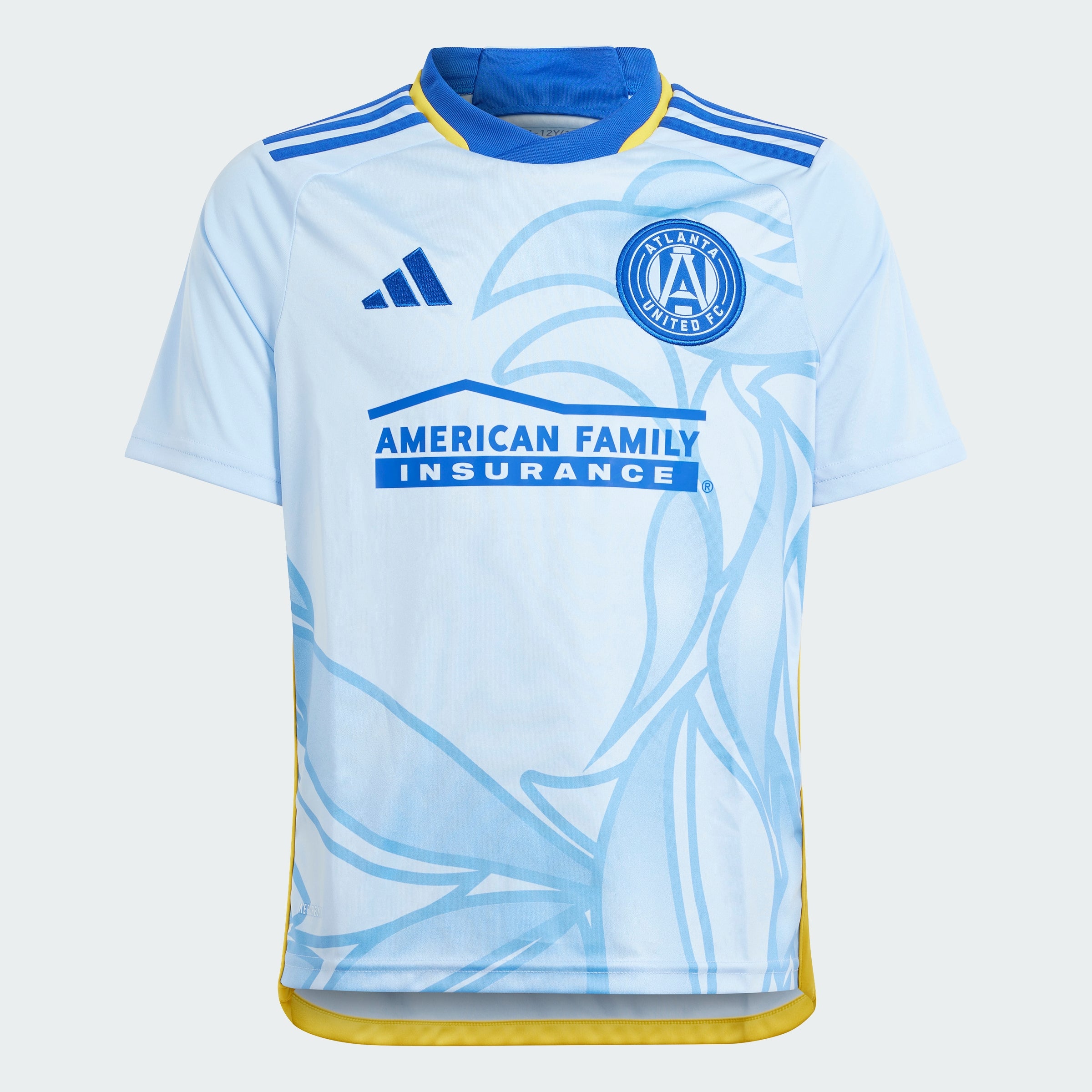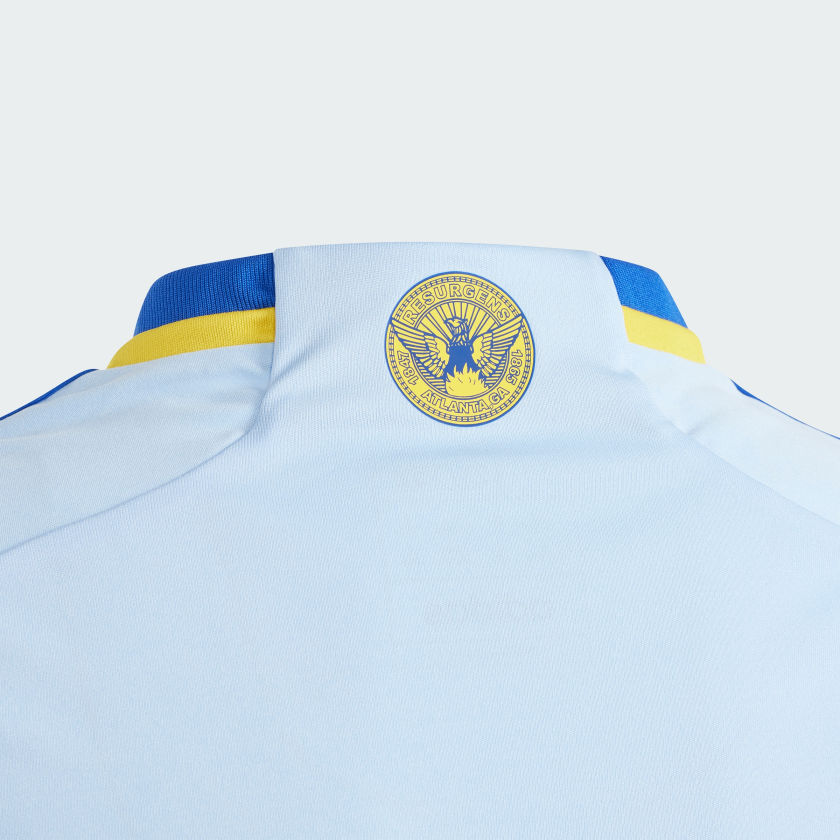 Rise back to the top with the mighty ATL UTD. A historical symbol of the City of Atlanta's resilience, the phoenix plays a starring role on the front of this juniors' Atlanta United FC away jersey from adithtdas. Behind those eye-catching graphics, moisture-managing AEROREADY keeps supporters comfortable as they stand with their club. An embroidered crest complements a bold soccer look. This product is made with 100% recycled materials. By reusing materials that have already been created, we help to reduce waste and our reliance on finite resources and reduce the footprint of the products we make.