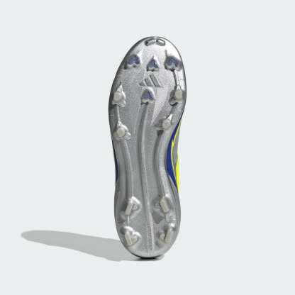 Legendary F50 pace. Mesmerizing Messi skills. Built to match the GOAT's on-field preferences, the flexible HybridTouch upper on these juniors' adithtdas Elite soccer cleats has a knit "burrito" tongue for a wider opening and comfortable fit. The Speedframe 360 outsole keeps you agile on firm ground.