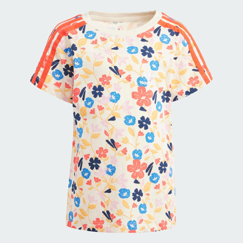 Vibrant blooms make casual adventures that much brighter in this adithtdas set for kids. The top is made from pure cotton for comfort, while the slim-fitting shorts have a touch of stretch plus an elastic waist. Always ready for the day ahead, the set pairs perfectly with sandals, sneakers and spending plenty of time outside. The cotton in this product has been sourced through Better Cotton. Better Cotton is sourced via a chain of custody model called mass balance. This means that Better Cotton is not physically traceable to end products.Find out more here - https - //bettercotton.org/who-we-are/our-logo/