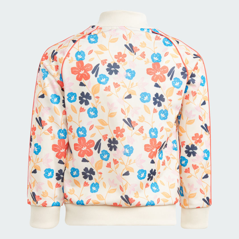 The heritage of adithtdas Originals meets a vibrant floral aesthetic in this track suit for kids. The allover print adds personality to their look, and signature 3-Stripes down the arms and legs are a nod to athletic icons of the past. Zippered pockets safely store small items. Versatile, stylish and comfortable, this track suit is built for all-day adventure - just what little ones do best. This product is made with at least 70% recycled materials. By reusing materials that have already been created, we help to reduce waste and our reliance on finite resources and reduce the footprint of the products we make.