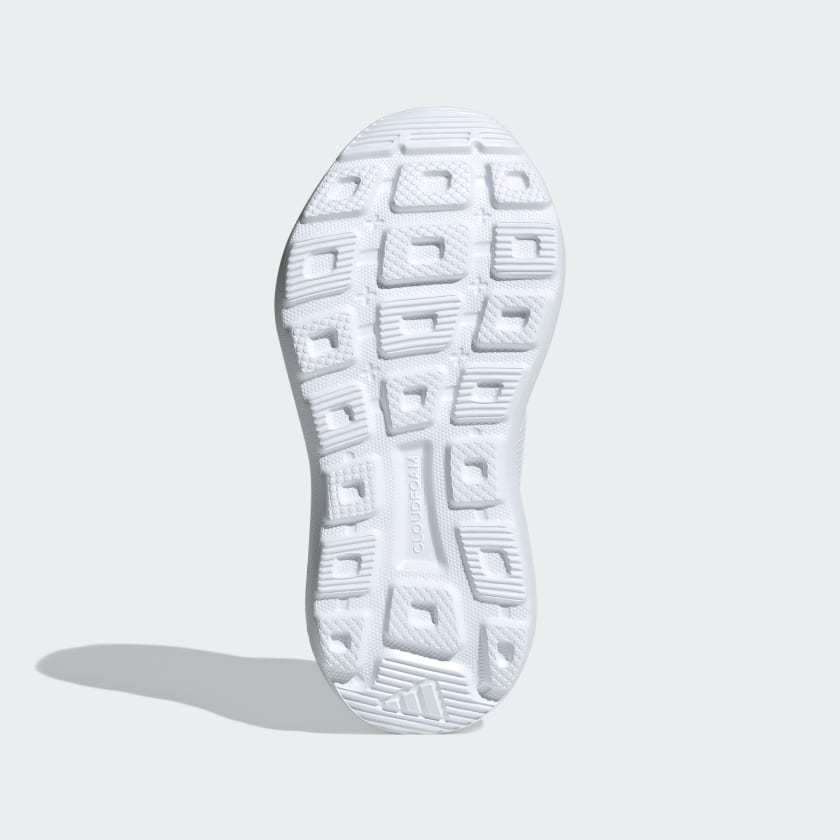 Whether they're at play or at rest, kids' feet deserve the best. These adithtdas shoes have a mesh upper to keep active kids comfortable on the move. A hook-and-loop strap over laces keeps the fit secure. A Cloudfoam midsole offers plush comfort all day long, and the non-marking rubber outsole is perfect for gym class and indoor playdates. This product features at least 20% recycled materials. By reusing materials that have already been created, we help to reduce waste and our reliance on finite resources and reduce the footprint of the products we make.