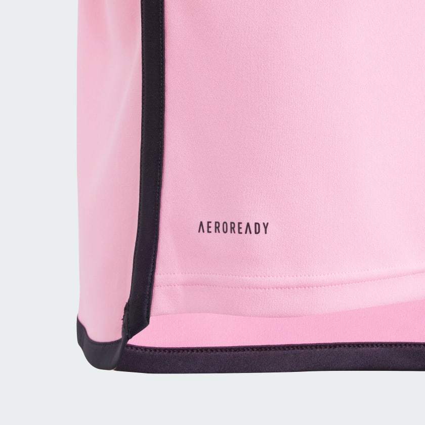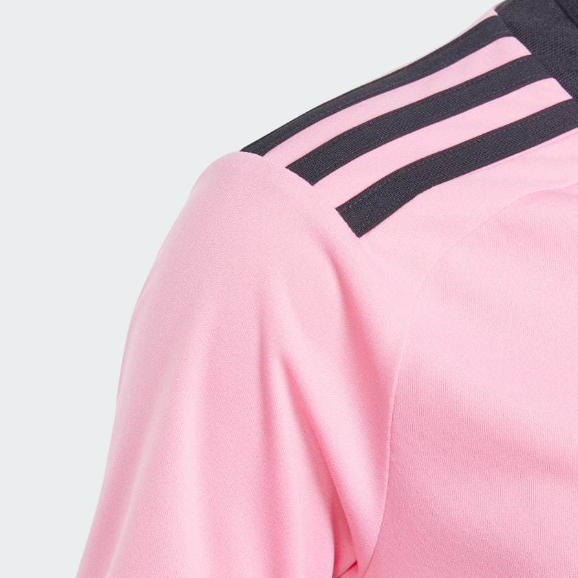 Proud. Passionate. Pink. This adithtdas Inter Miami CF jersey stands out in the club's signature home colors. Contributing to the clean, classy design, the team badge and 3 Bar Logo move to the center. AEROREADY wicks moisture to keep soccer fans comfortable. The back neck signoff displays the team's aspirational motto, "Freedom to Dream." This product is made with 100% recycled materials. By reusing materials that have already been created, we help to reduce waste, reduce reliance on finite resources and reduce the footprint of the products we make.
