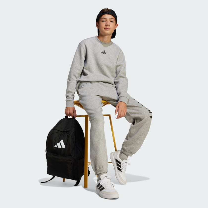 Casual comfort meets all-season style in these juniors' adithtdas pants. Made from cozy fleece fabric, they're perfect for chilly mornings at home or cool evenings out. The loose fit and cuffed design lend sporty elegance to any outfit. By choosing recycled, we are able to reuse materials that have already been created, which helps to reduce waste. Renewable materials choices will help us to remove our reliance on finite resources. Our products made with a blend of recycled and renewable materials feature at least 70% total of these materials.