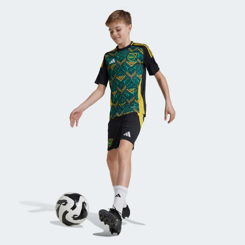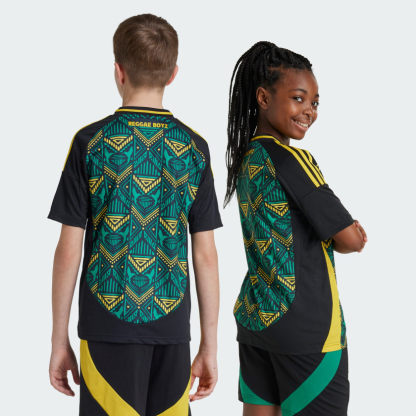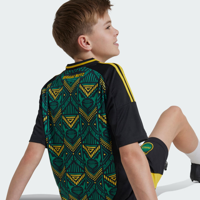Feel the spirit of Jamaica on the pitch and in the stands. Including national symbols and a vibrant design inspired by the country's rich heritage, the colourful print on this juniors' adithtdas away jersey is hard to miss. Designed to keep young fans proud, this football shirt includes moisture-managing AEROREADY and an embroidered team badge.This product is made with 100% recycled materials. By reusing materials that have already been created, we help to reduce waste and our reliance on finite resources and reduce the footprint of the products we make.