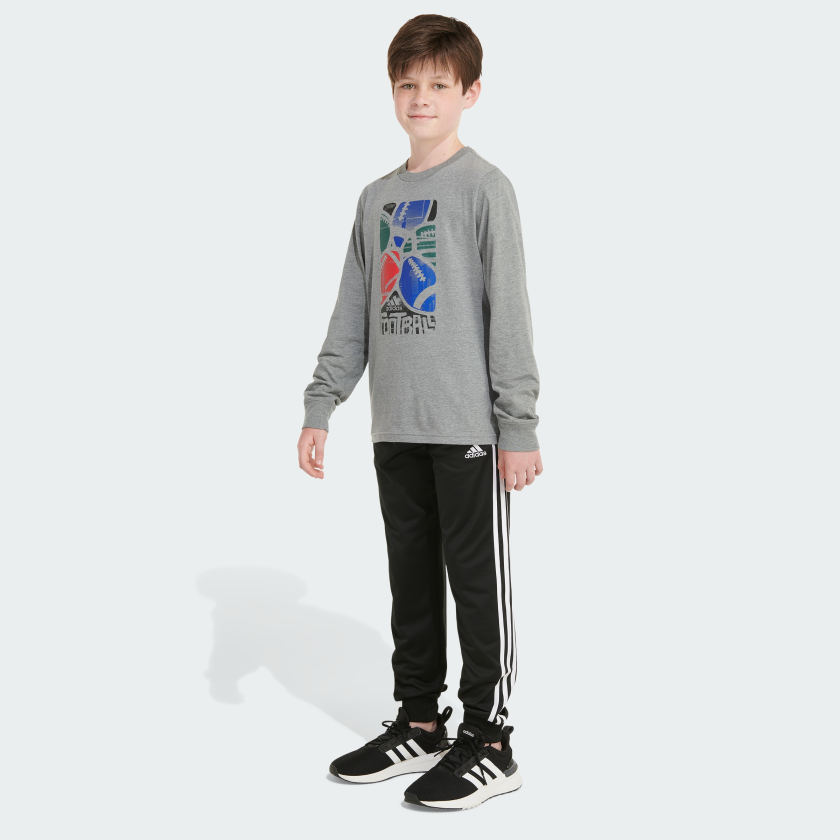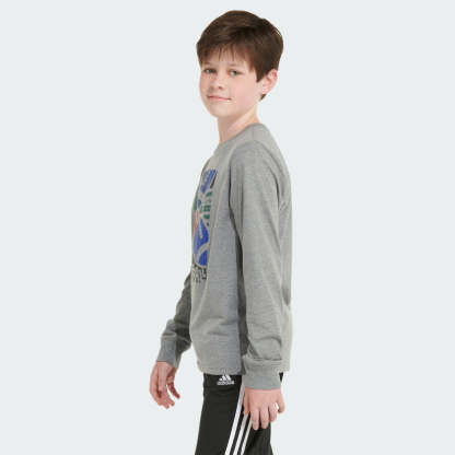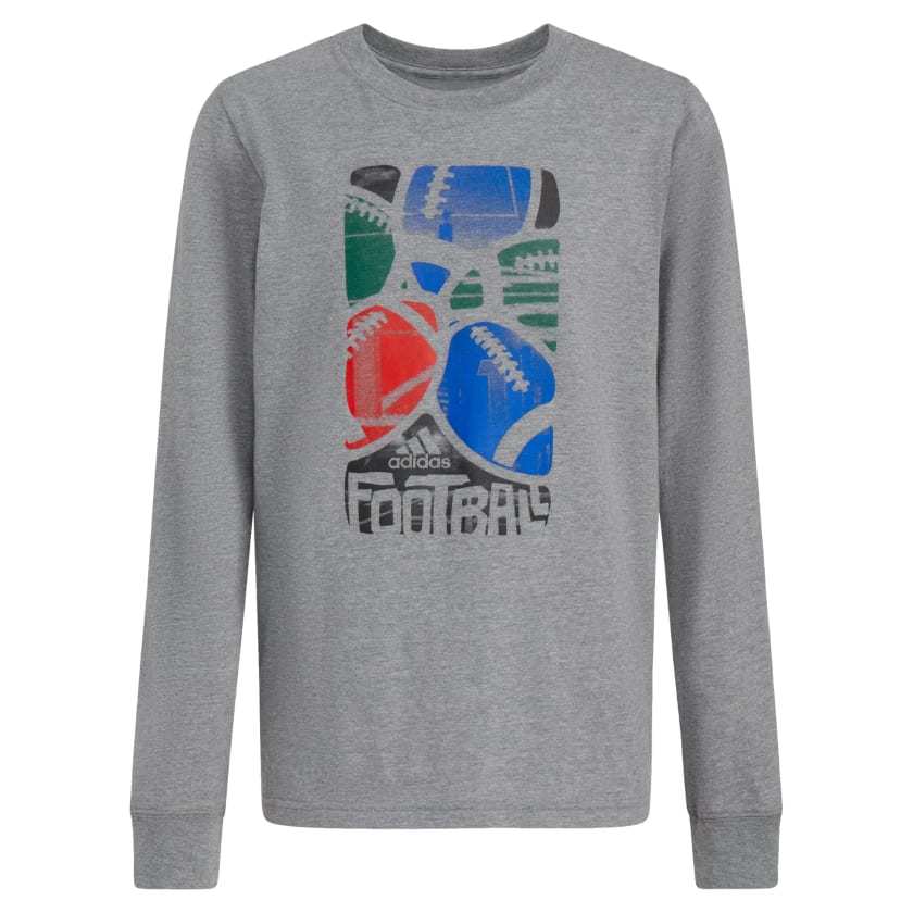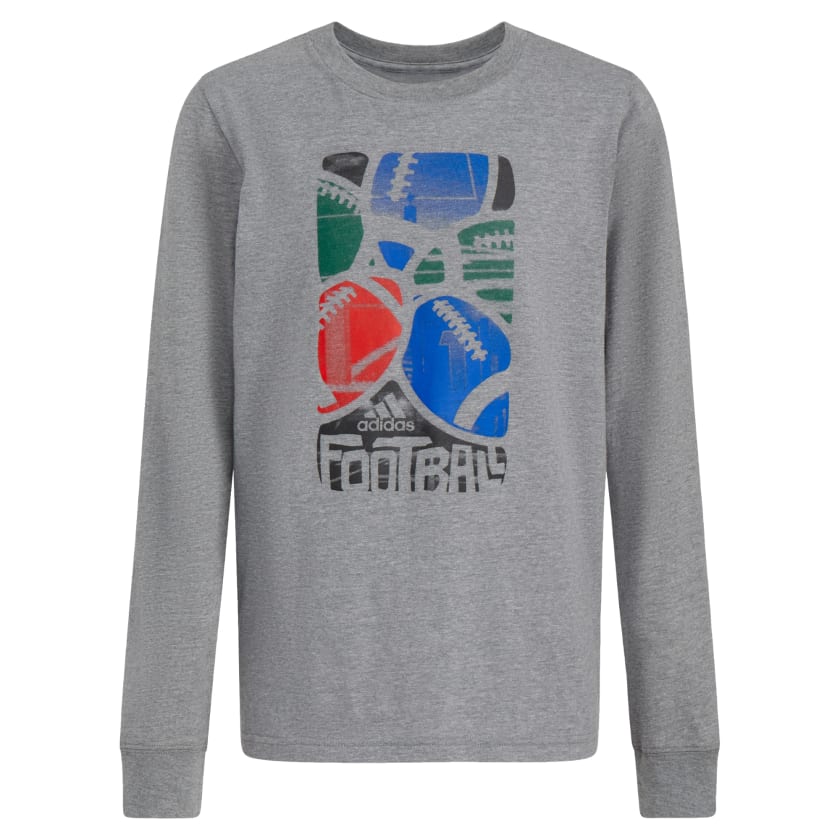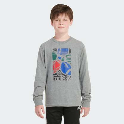 A win for boys of all ages. This kids' adithtdas long sleeve tee is made of soft cotton jersey fabric and features a ribbed collar and cuffs for easy, everyday versatility Football-inspired graphics combine hand-drawn and photorealistic elements. We partner with Better Cotton to improve cotton farming globally. Better Cotton makes global cotton production better for the people who produce it, better for the environment it grows in, and better for the sector's future. Better Cotton is sourced via a chain-of-custody model called mass balance. This means that Better Cotton is not physically traceable to end products. However, Better Cotton Farmers benefit from the demand for Better Cotton in equivalent volumes to those we "source." Find out more here - bettercotton.org/learn more