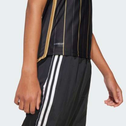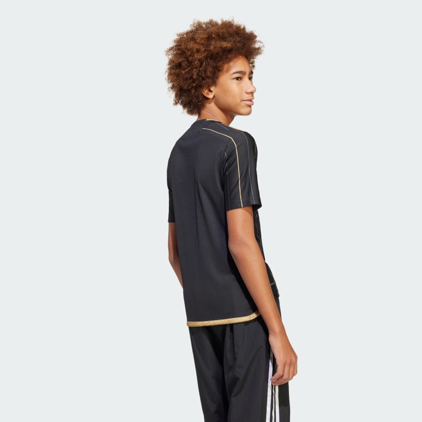 Make a soccer statement in this juniors' Los Angeles Football Club jersey from adithtdas. Keeping things classy with a minimalist look punctuated on the front by golden pinstripes, this shirt was created for young fans. AEROREADY keeps you dry no matter how intense the on-field action gets. A team crest and "Shoulder to shoulder" signoff add those all-important final details. This product is made with 100% recycled materials. By reusing materials that have already been created, we help to reduce waste and our reliance on finite resources and reduce the footprint of the products we make.