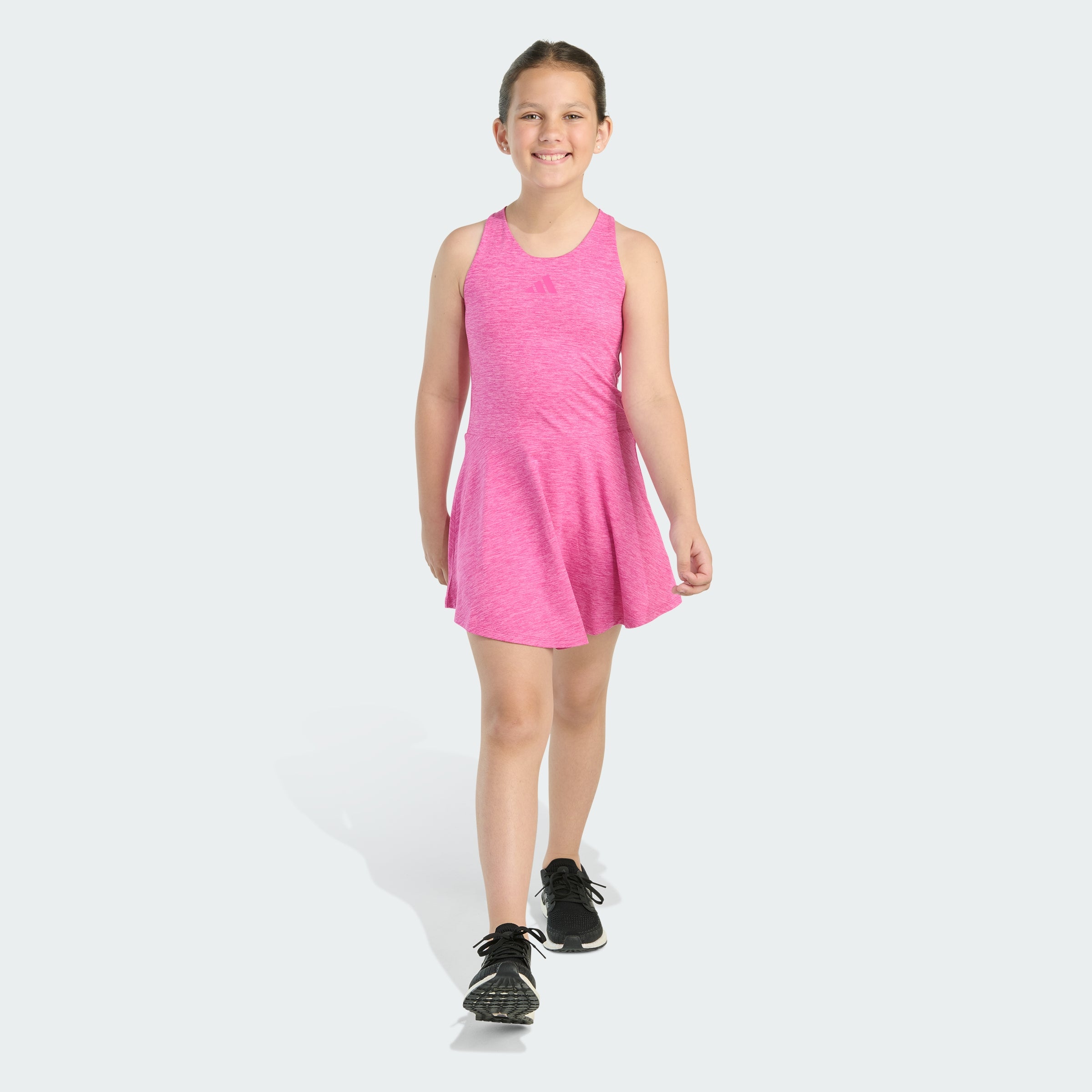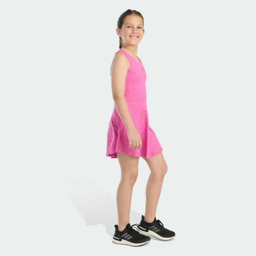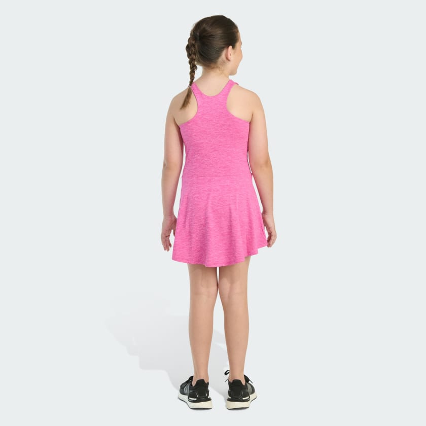 An adithtdas flounce dress is perfect for your active life. The racerback cut maximizes freedom of movement for your favorite sports and activities. The subtle 3 Bar Logo brings iconic, sporty style, and the textured-looking fabric looks great in a range of colors.