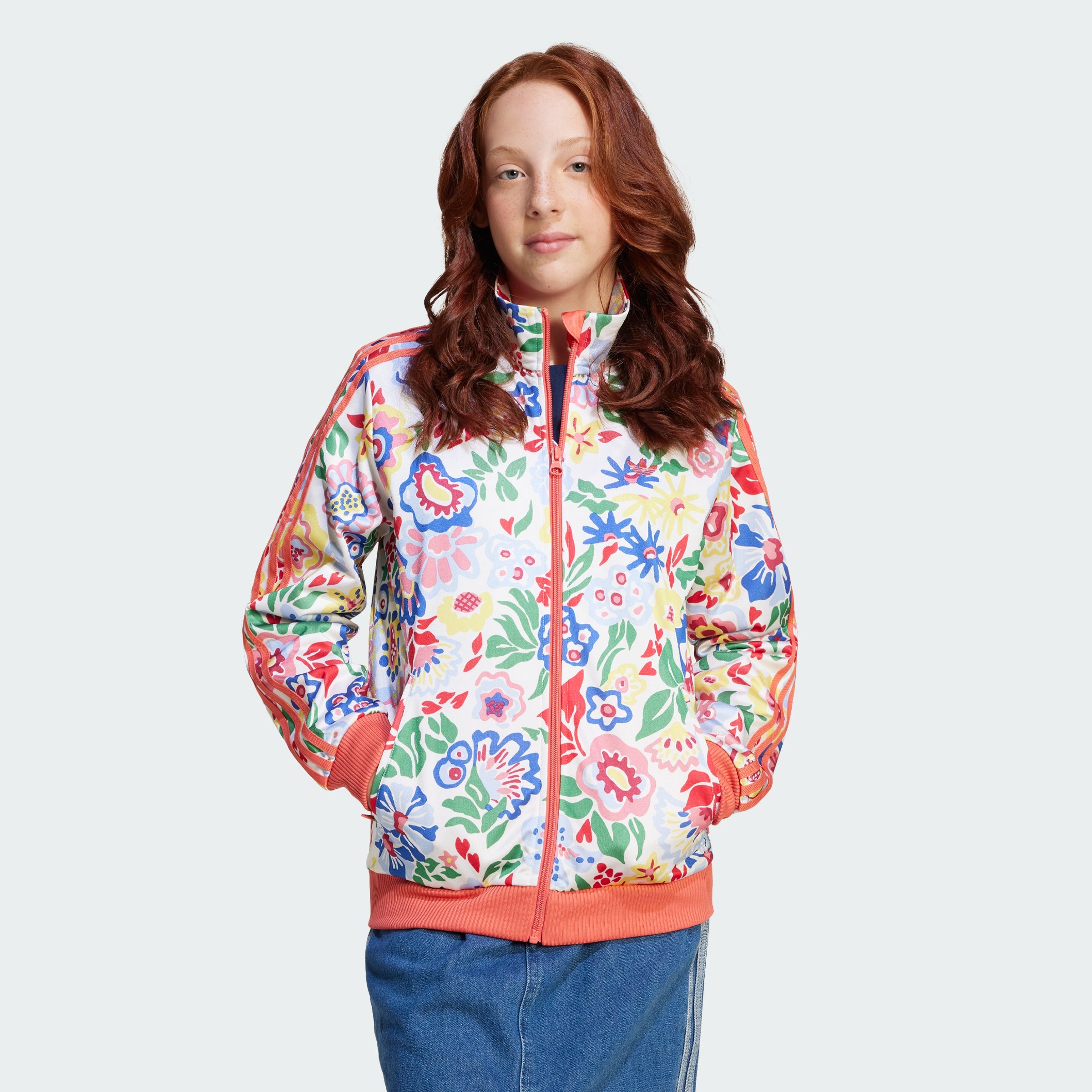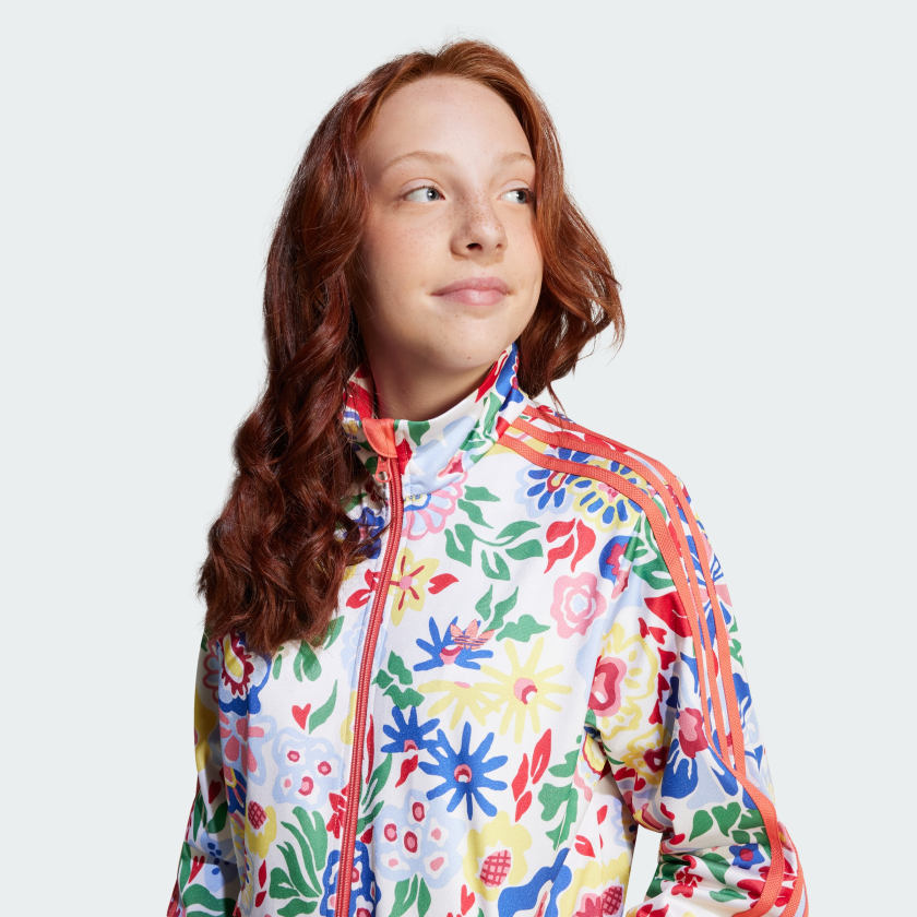 Partnering with luxury department store Liberty London, this juniors' adithtdas Firebird Track Top combines an essential silhouette with a roaring fresh design. Featuring hand-painted floral artwork, it's bright and lively with a look that's impossible to miss. Cut with a loose fit from sporty tricot fabric, it zips up for easy on and off and has a ribbed hem and cuff finish. A chest Trefoil and 3-Stripes along the sleeves add marks of adithtdas distinction.