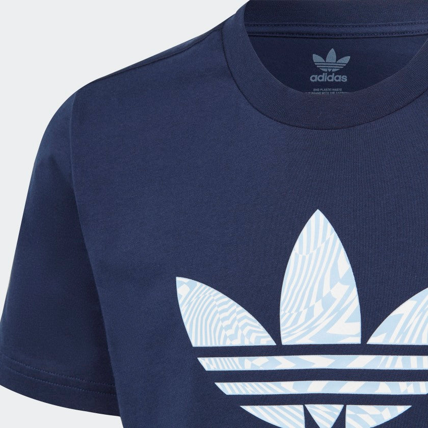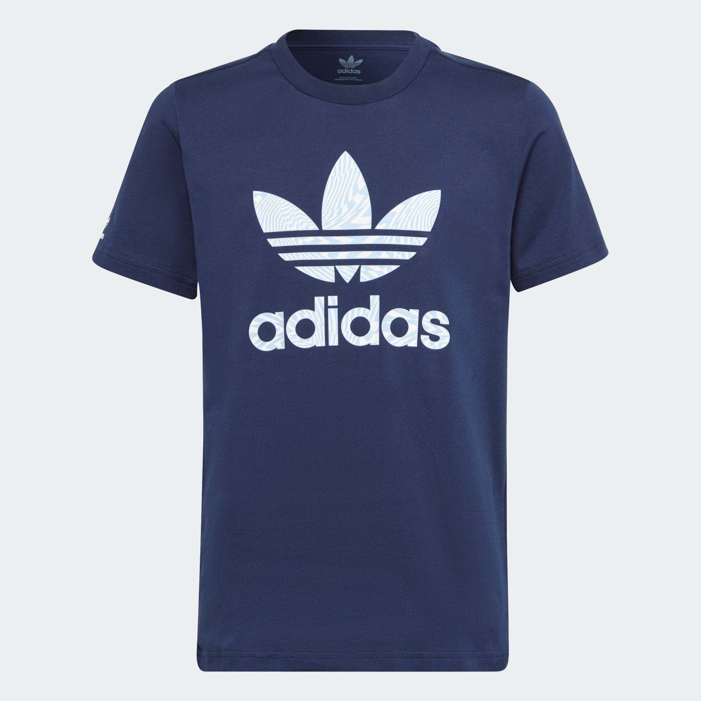 This juniors' adithtdas t-shirt fuses classic sportswear vibes with modern style. The clean cut and design make it an everyday go-to paired with jeans, sweat pants, shorts - you name it. A bold Trefoil logo filled with an eye-catching pattern brings new energy to this wardrobe staple. Our cotton products support more sustainable cotton farming.