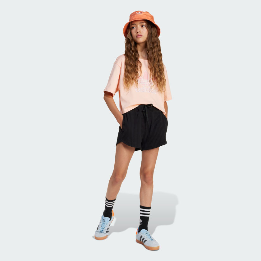 The perfect pair for warm days and chill vibes, these adithtdas shorts are all about easy style. They're made from soft ribbed fabric with a loose shape that's laid-back and comfortable. Pair them with your favorite tee or layer them under a dress for a modern look.