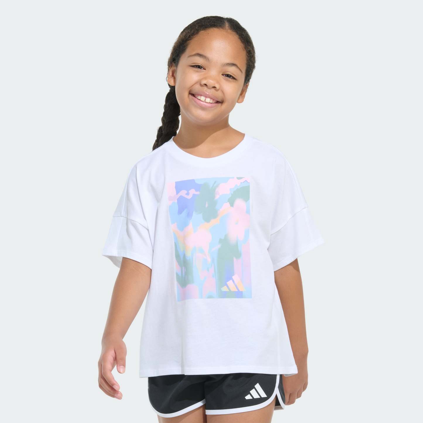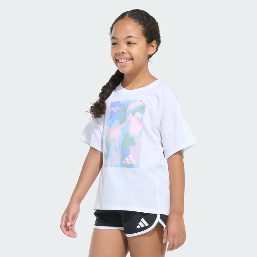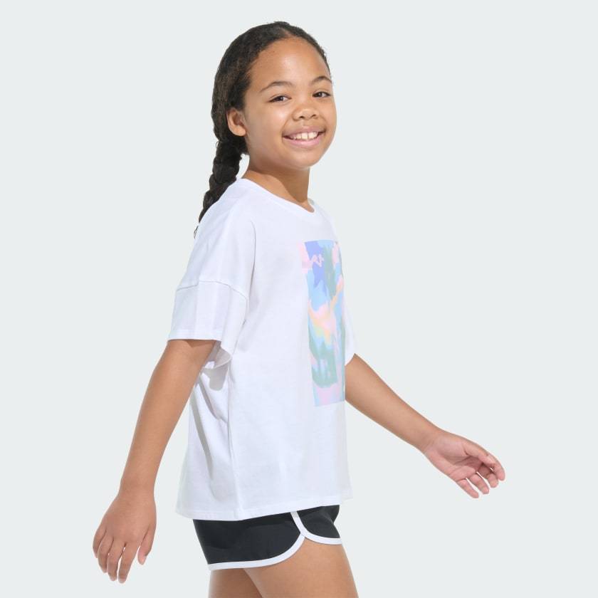 This kids' t-shirt is a fresh take on an adithtdas must-have cropped tee. Made of soft cotton, it feels loose and has extra room in the shoulders. A vivid graphic completes the look.