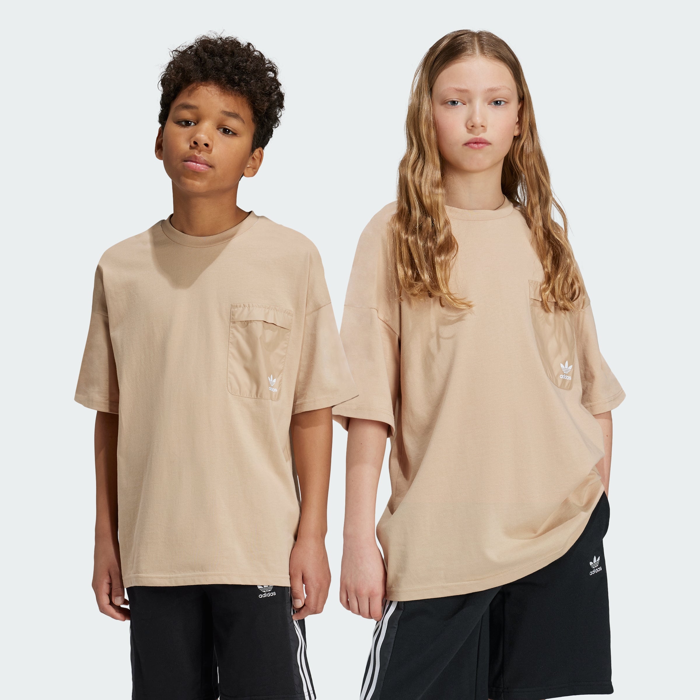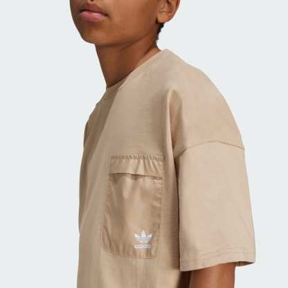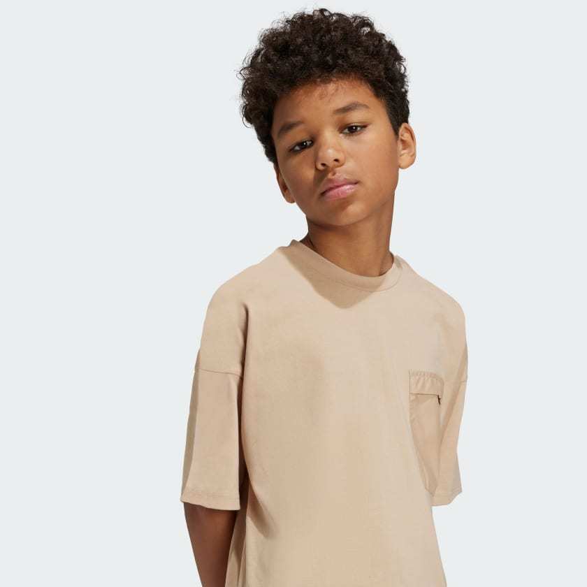 Make a statement and let your style shine through. The loose shape of this juniors' adithtdas tee creates an easygoing look that's perfect for everyday adventures. Made of soft cotton jersey with a woven pocket, it shines with cozy comfort and casual style. The cotton in this product has been sourced through Better Cotton. Better Cotton is sourced via a chain of custody model called mass balance. This means that Better Cotton is not physically traceable to end products. Find out more here - https - //bettercotton.org/who-we-are/our-logo/