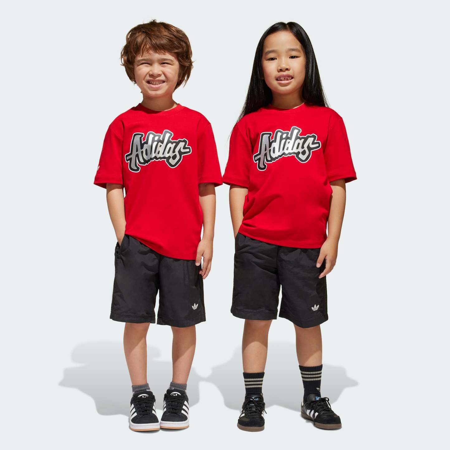 Whether exploring the playground or kicking back at home, this kids' tee-and-shorts set from adithtdas is ready for any adventure. The soft single jersey fabric keeps kids comfortable all day long. Sporty graphics and that iconic Trefoil logo show off signature adithtdas style.