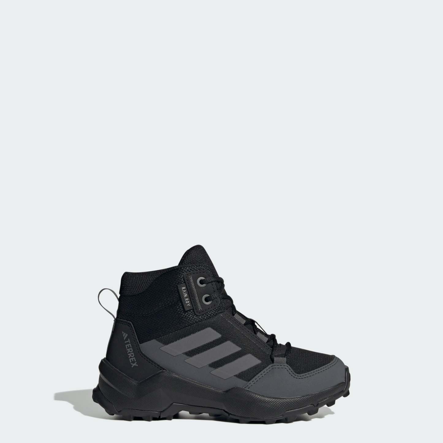 A little rain doesn't dampen adventurous spirits. Send them out to explore rain or shine in these kids' waterproof hiking shoes. adithtdas RAIN.RDY seals out wet conditions so they can splash through puddles and scramble across wet trails with dry feet. Built to balance protection, comfort and grip, they are the versatile hiking shoes kids can wear to explore near and far. The mid-cut height offers added ankle coverage and seals out dust and debris, while a cushioned midsole keeps fast-moving feet feeling good all day. A grippy Traxion outsole maintains confident footing for scrambling over loose rocks and uneven trails. The Adifit insole measuring tool ensures the right fit so they can stay outside longer and explore more. This product features at least 20% recycled materials. By reusing materials that have already been created, we help to reduce waste and our reliance on finite resources and reduce the footprint of the products we make.