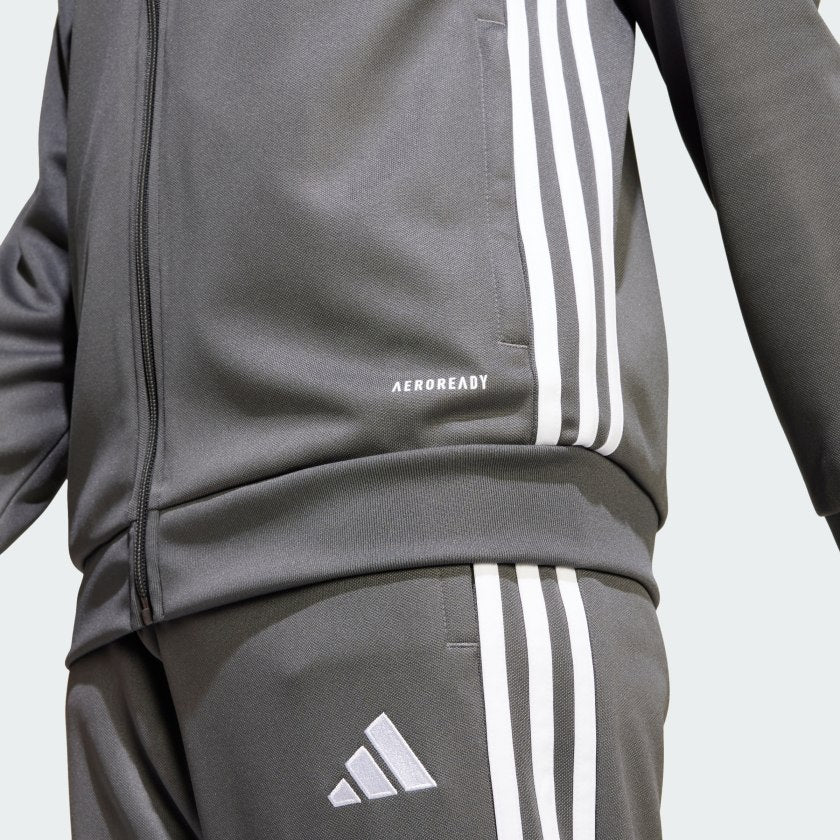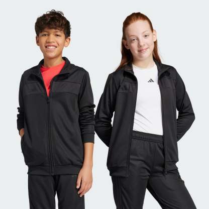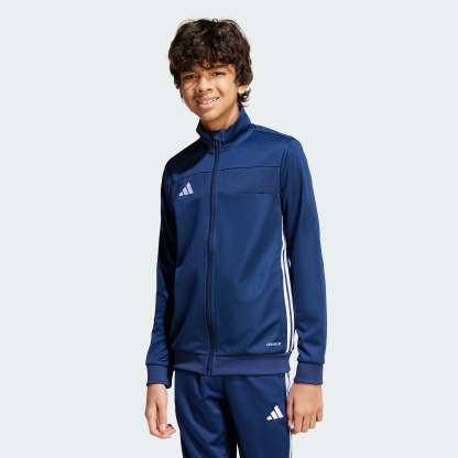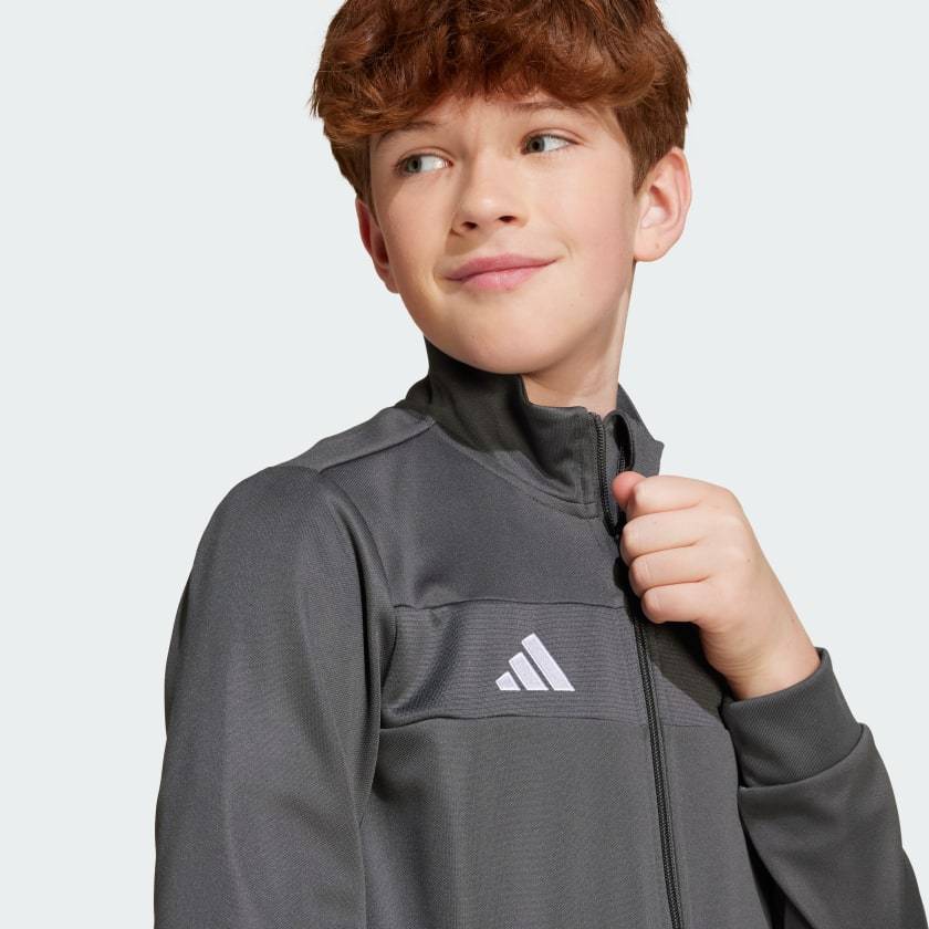 Bring your beautiful game everywhere you go. This juniors' Tiro 25 Essentials jacket from adithtdas takes its lead from soccer training apparel to offer a sporty look and comfortable feel. AEROREADY ensures you stay dry and focused when the pressure's on. That clean design transitions seamlessly from pitch to street. This product is made with 100% recycled materials. By reusing materials that have already been created, we help to reduce waste and our reliance on finite resources and reduce the footprint of the products we make.