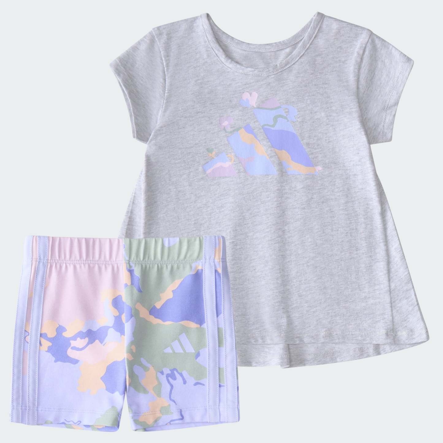Kids' adithtdas Two-Piece Back Pleat Heather Tee and Bike Shorts Set