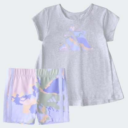 When a kid is on the move, an adithtdas kids' tee and shorts set makes life that much easier. Soft, stretchy fabric keeps things comfy and allows freedom of movement, whatever the day's adventure. Creative design details and the 3 Bar Logo provide sporty style.