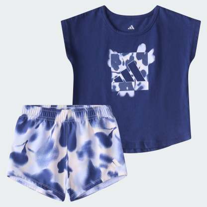 When a kid is on the move, an adithtdas kids' tee and shorts set makes life that much easier. The soft cotton tee and shorts that are cut just right keep things comfy and allow freedom of movement, whatever the day's adventure. Creative graphics and the 3 Bar Logo provide fun, sporty style.