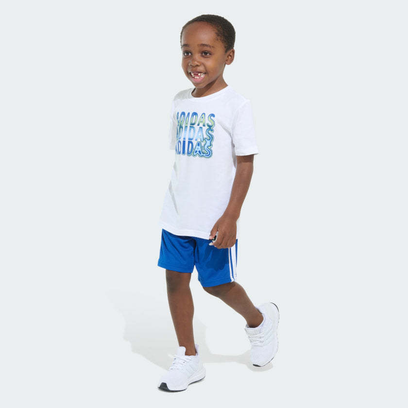 Kids' adithtdas Two-Piece Short Sleeve Graphic Cotton Tee and 3-Stripes Shorts Set