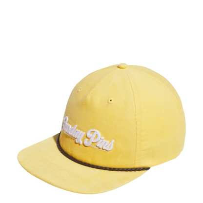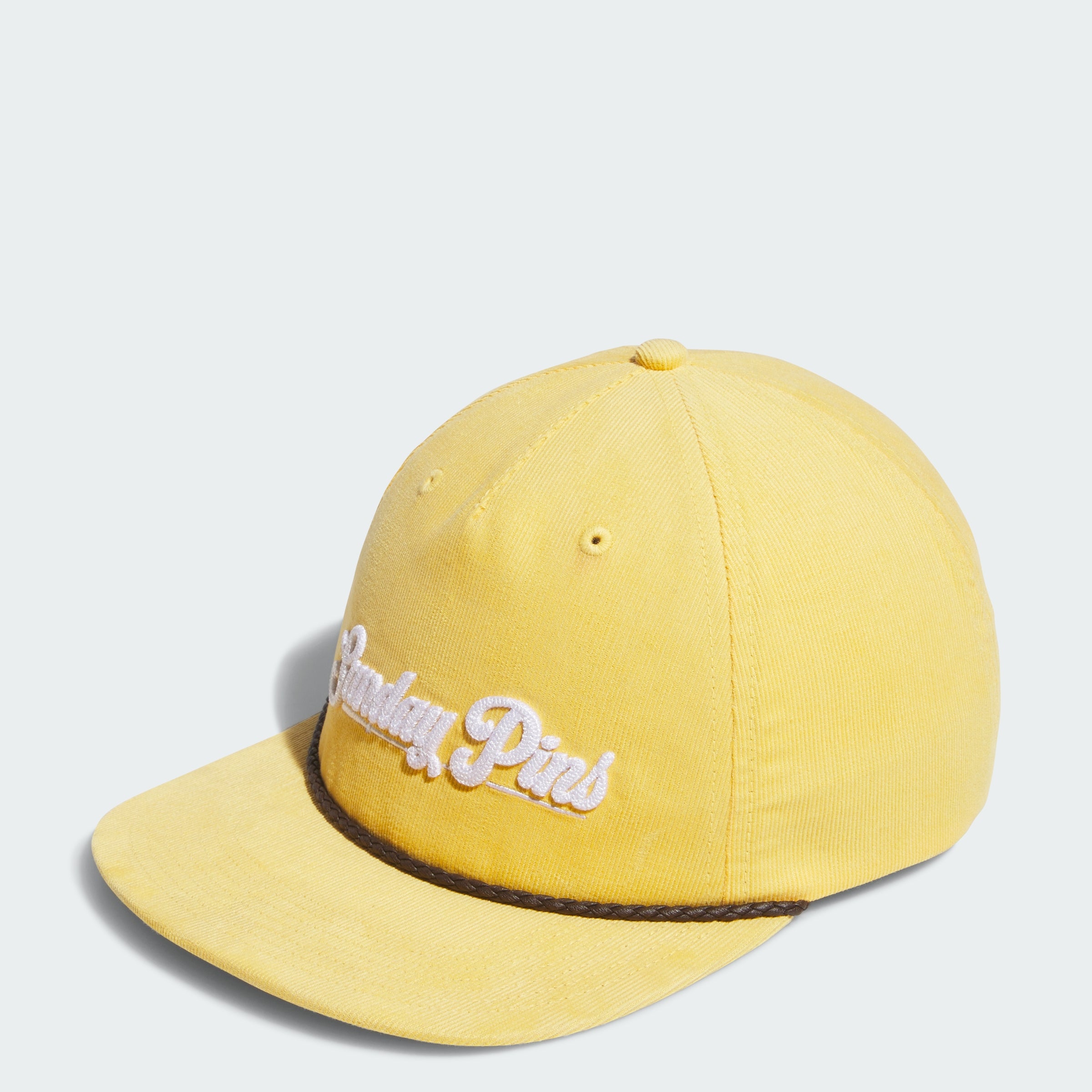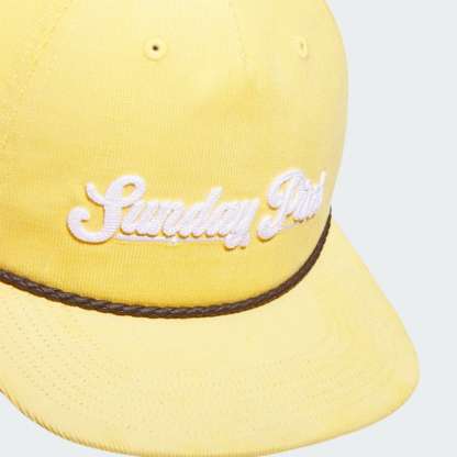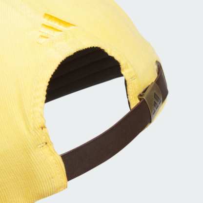 No mater which day of the week you play, this adithtdas "Sunday Pins" ball cap brings unexpected style to any golf uniform. A flat brim with leather cord and a soft corduroy build help set your style apart. The cotton in this product has been sourced through Better Cotton. Better Cotton is sourced via a chain of custody model called mass balance. This means that Better Cotton is not physically traceable to end products. Find out more here - https - //bettercotton.org/who-we-are/our-logo/