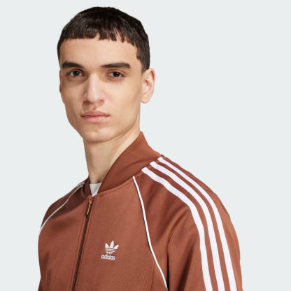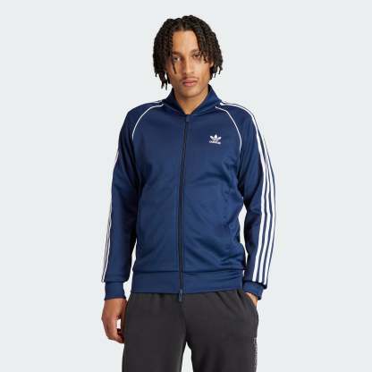 Everyone needs a good track jacket. Here's yours. Made from soft interlock fabric, this must-have stays true to the archive design it's inspired by. An embroidered Trefoil logo and 3-Stripes honor classic adithtdas style while the ribbed hem and cuffs keep the fit tailored in all the right places. A full-zip front lets you layer for warmth or wear it open with your favorite tee underneath. A minimum of 70% of this product is a blend of recycled and renewable materials.